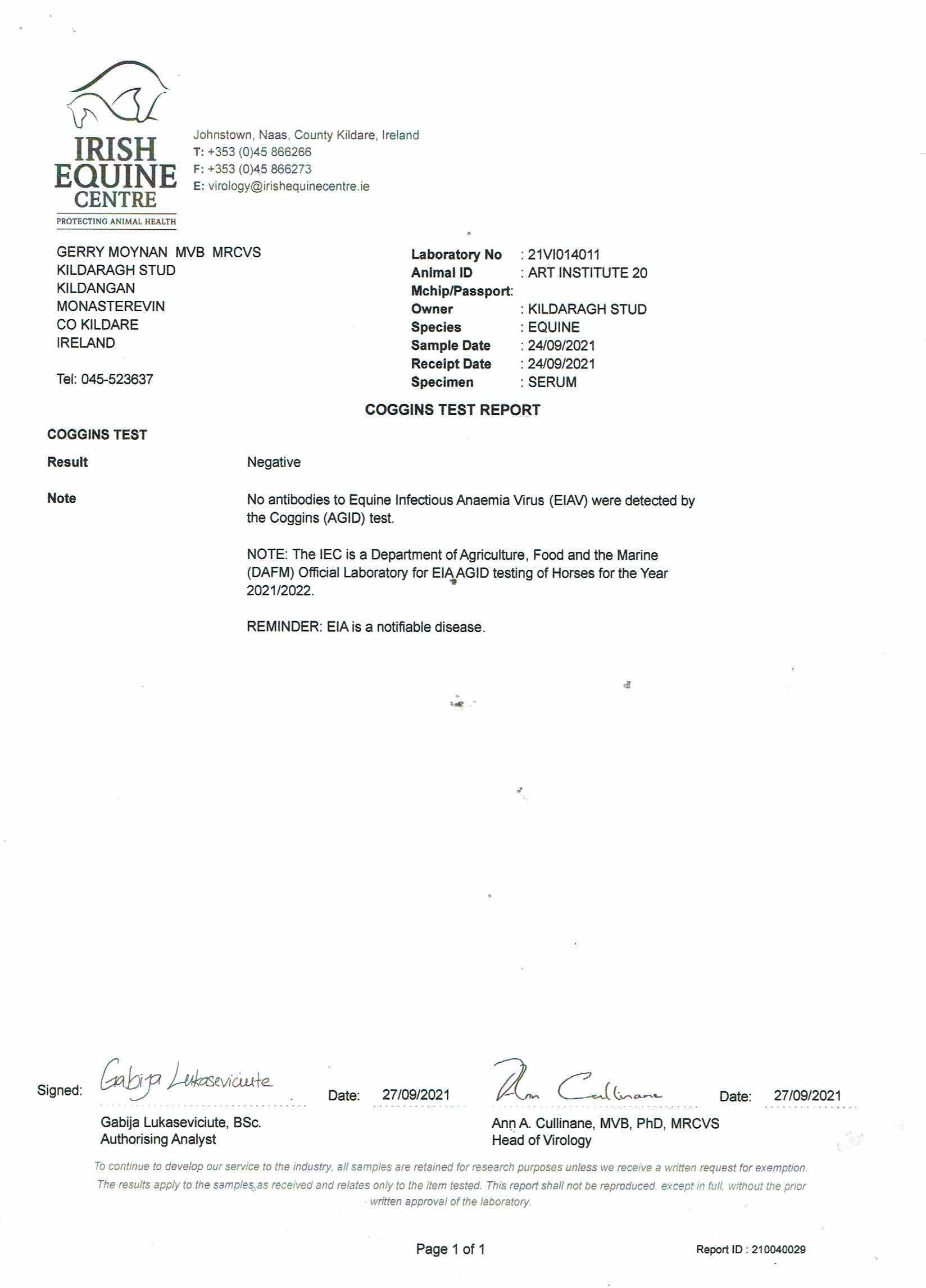 Consignor: Kildaragh Stud, Ireland (Agent)
