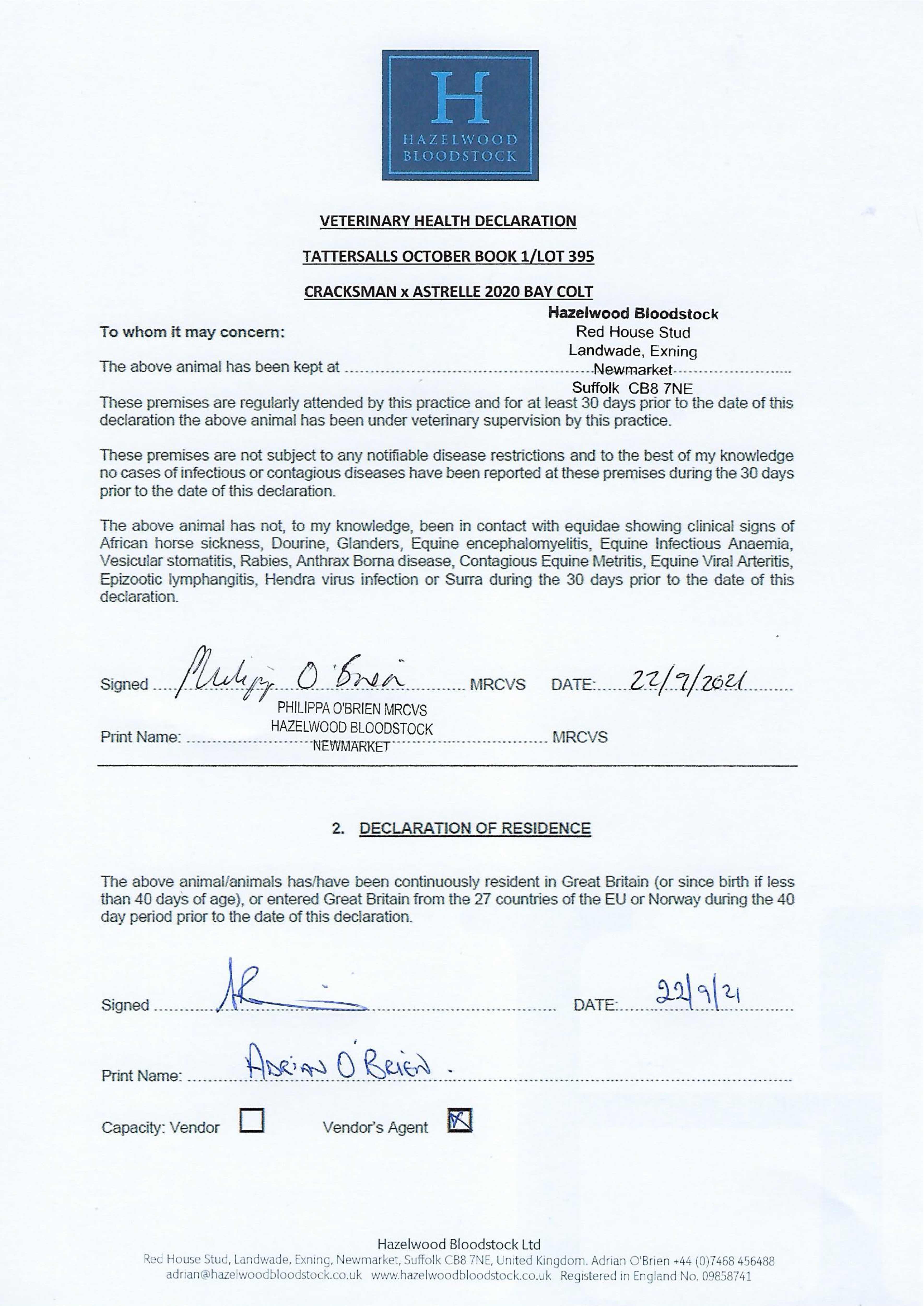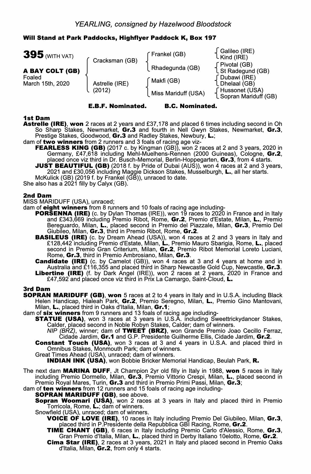 Contact: Adrian O'Brien ✆ +447468456488 ✉ adrian@hazelwoodbloodstock.co.uk