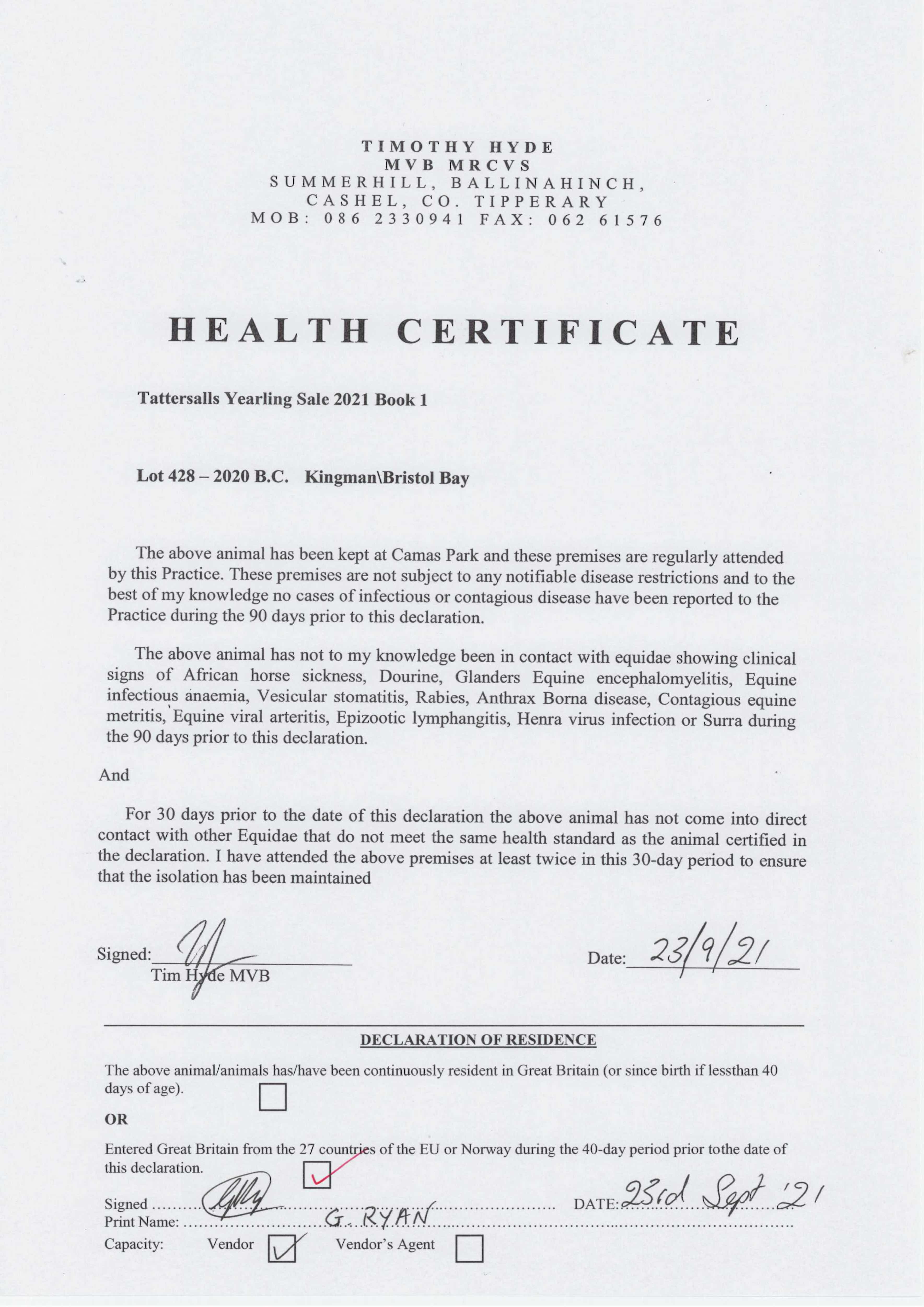 Consignor: Camas Park Stud, Ireland