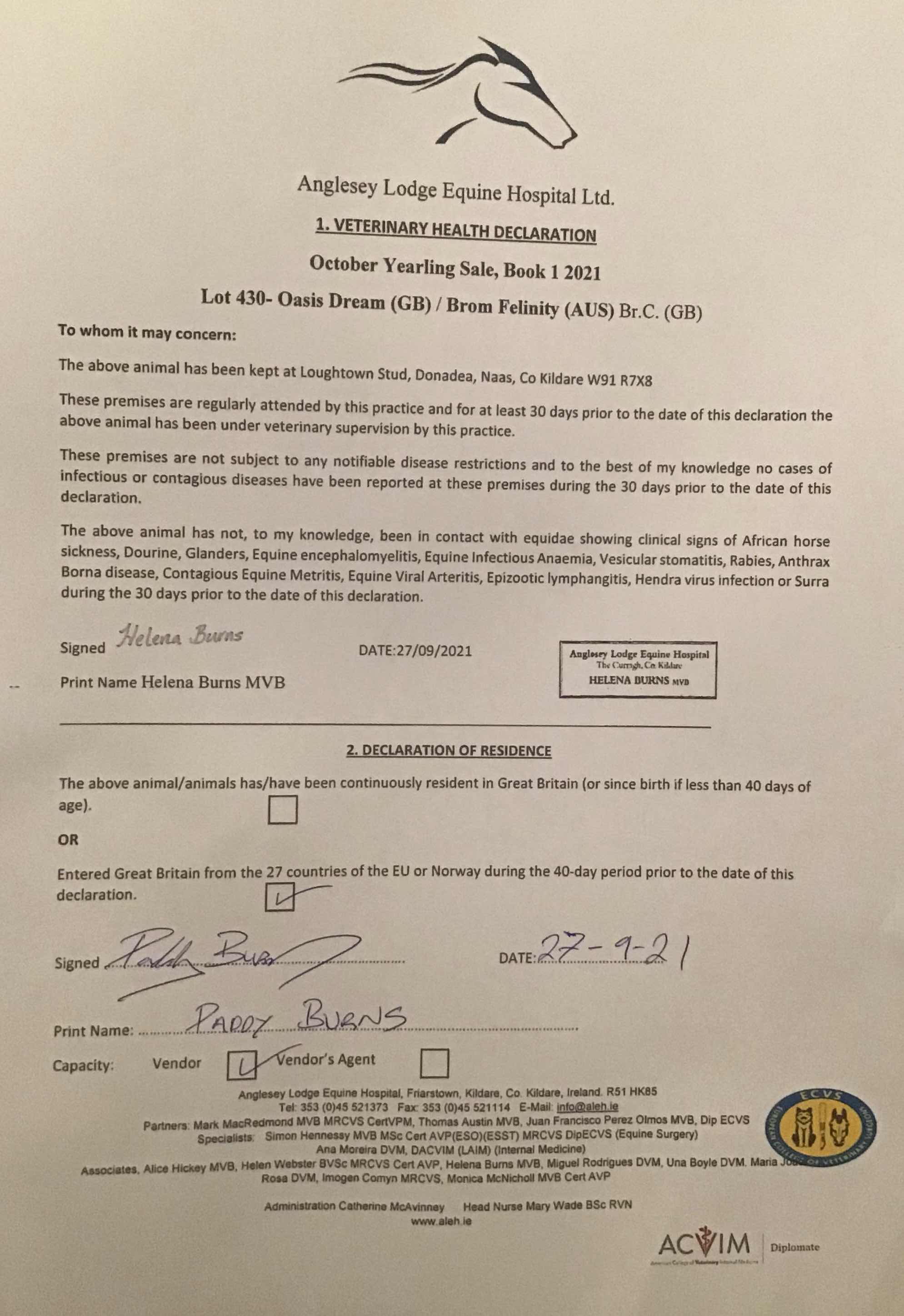 Consignor: Loughtown Stud, Ireland