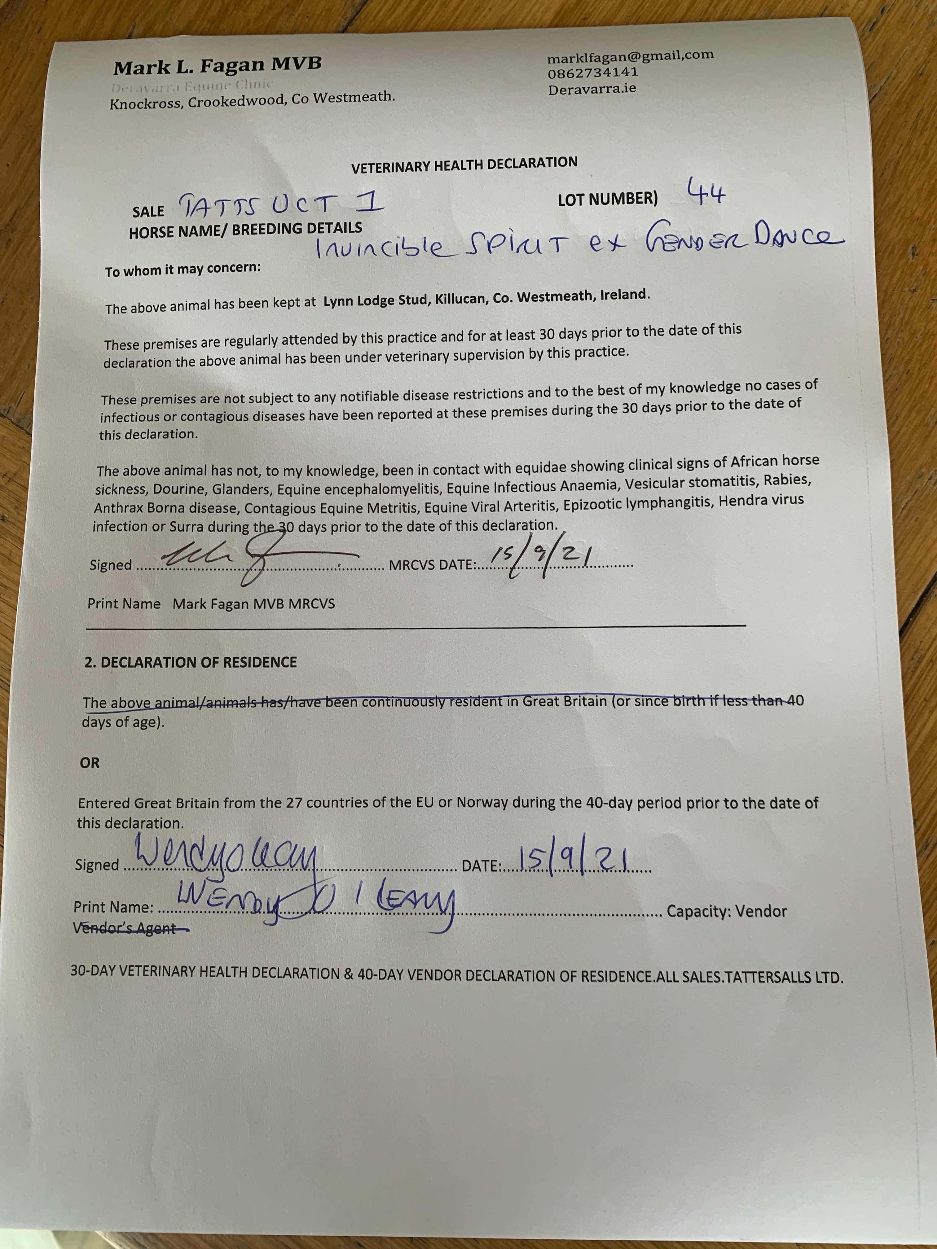 Consignor: Lynn Lodge Stud, Ireland