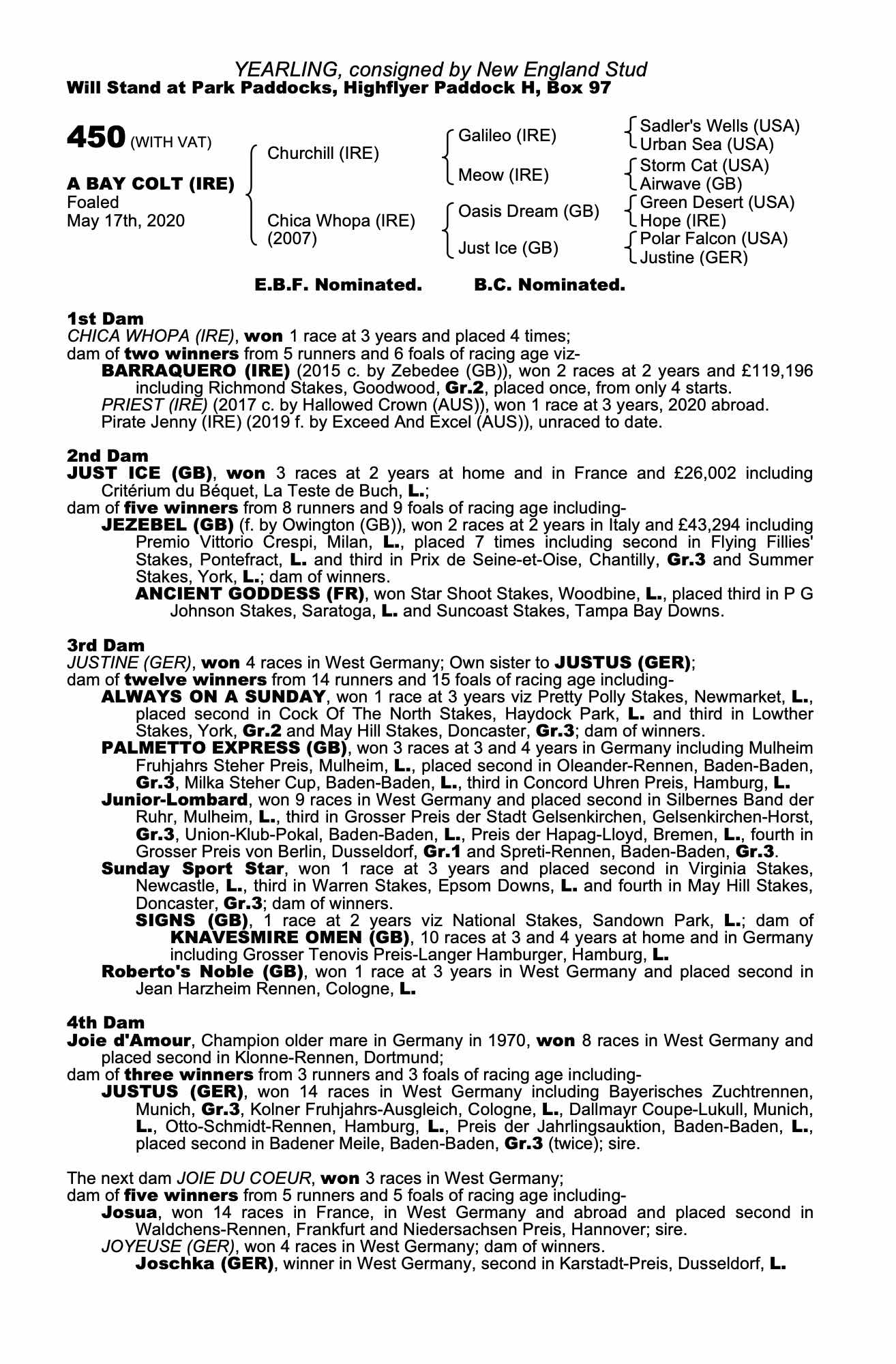 October Yearling Sale, Book 1 2024 lot 114 F. by Wootton Bassett (GB) 2023, New England Stud=>Badgers /Reeves/ Rocco / Searles / EDC / Clement 420,000 gns