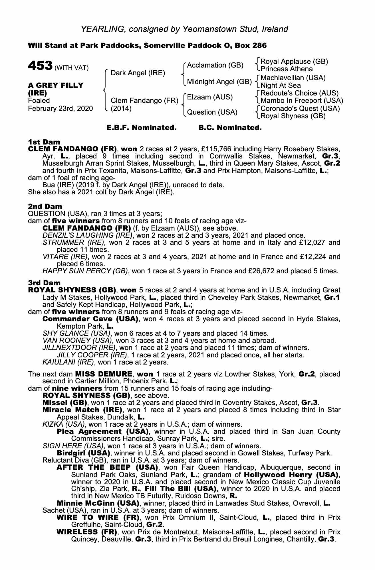 October Yearling Sale, Book 2 2024 lot 645 F. 2023, Yeomanstown Stud, Ireland=>Roger Varian 320,000 gns