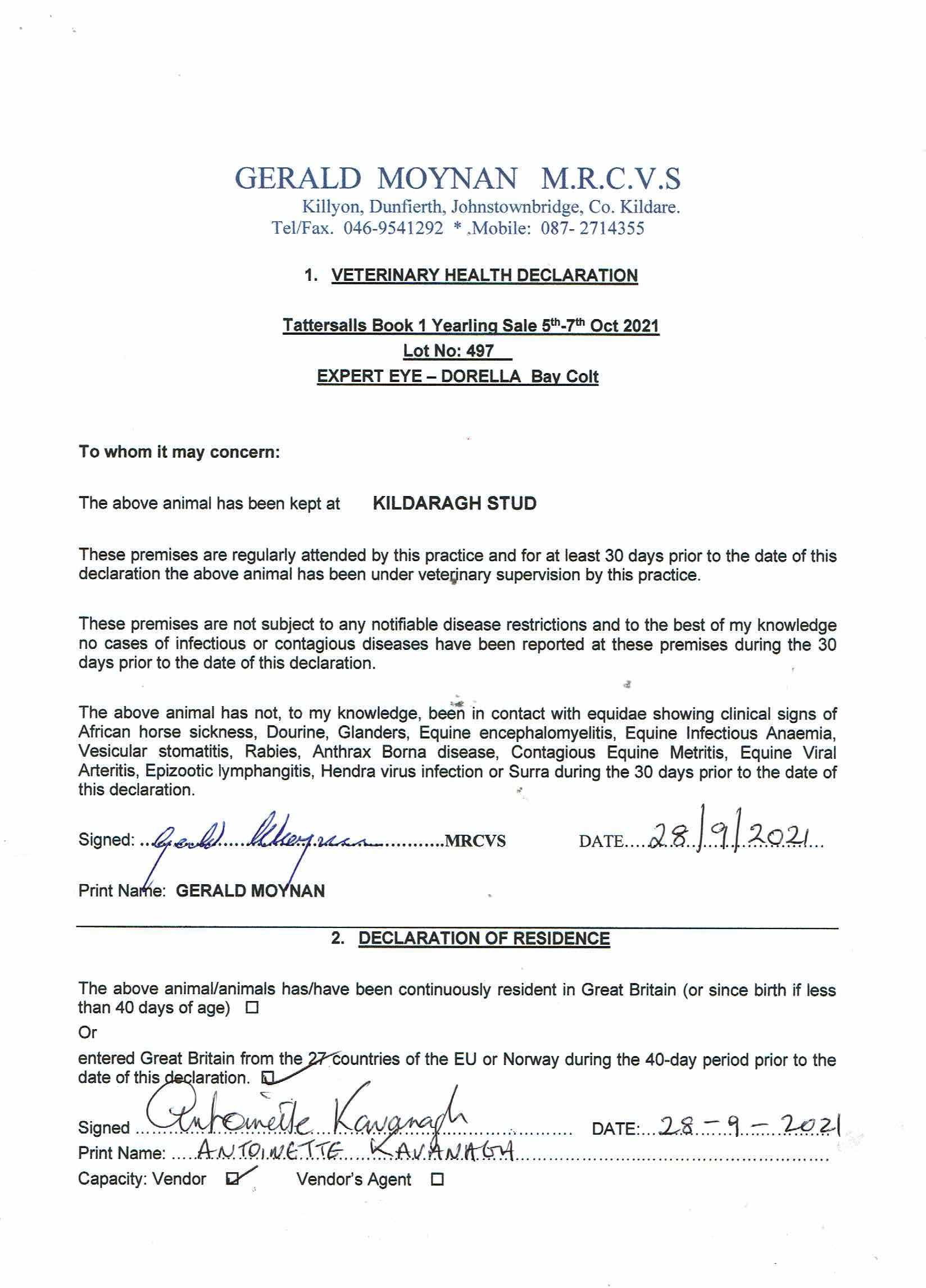 Consignor: Kildaragh Stud, Ireland (Agent)