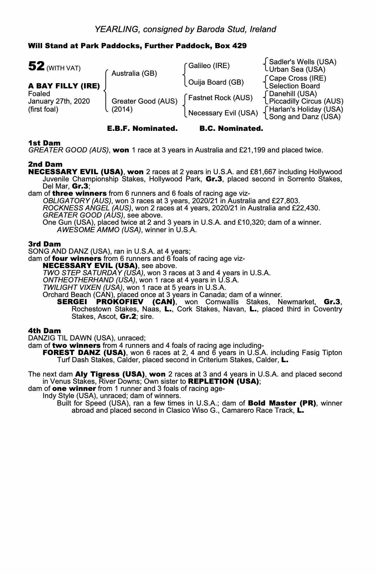 Consignor: Baroda Stud, Ireland