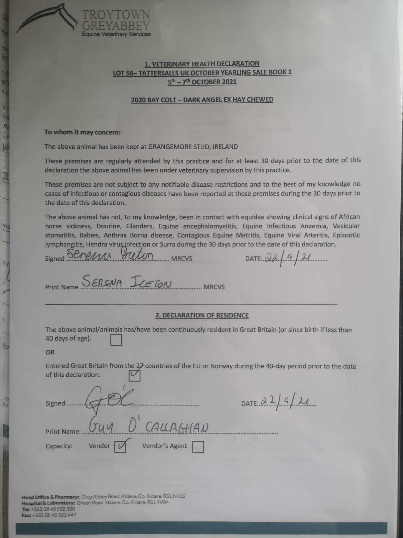 Consignor: Grangemore Stud, Ireland