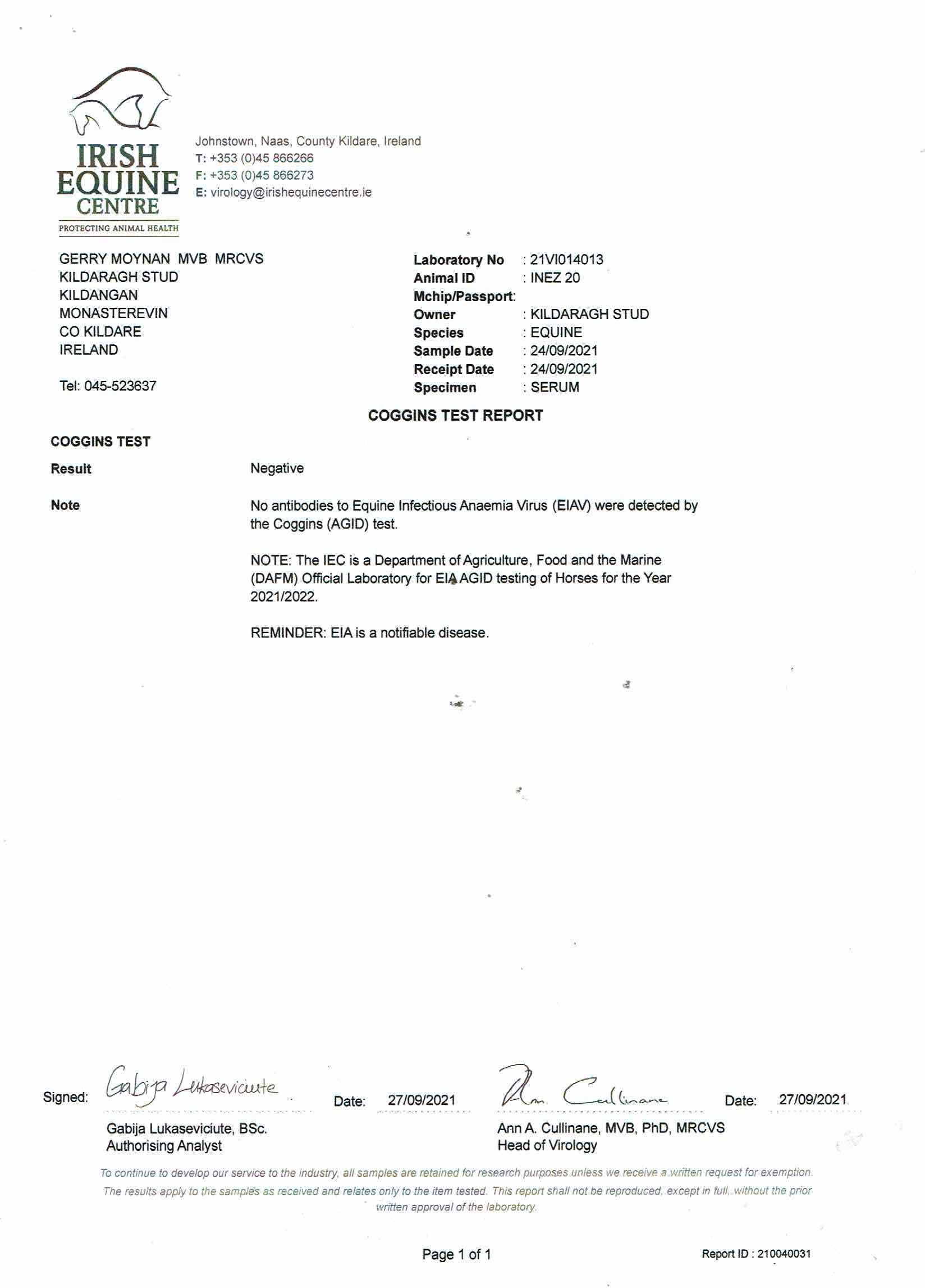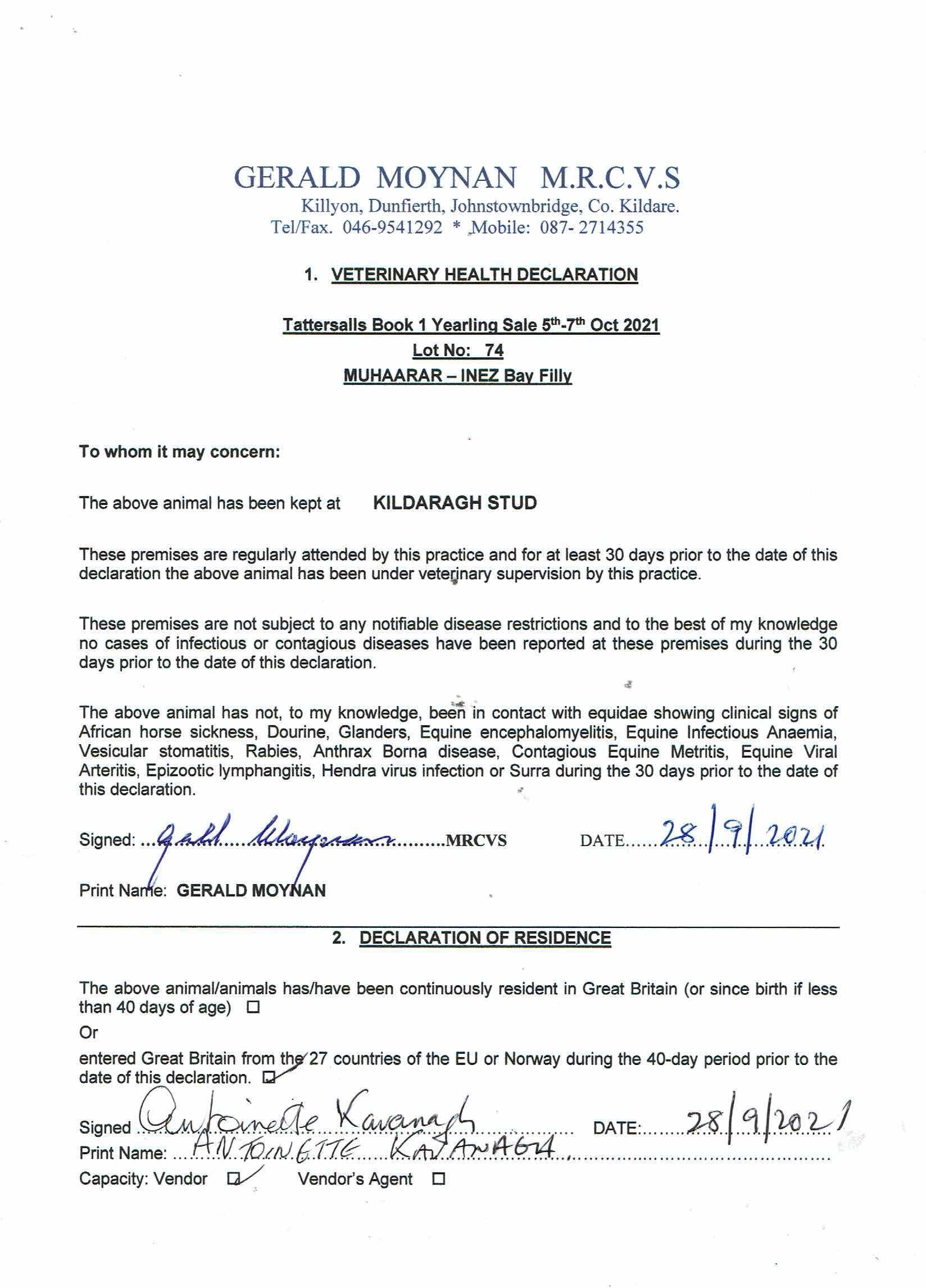 Consignor: Kildaragh Stud, Ireland (Agent)