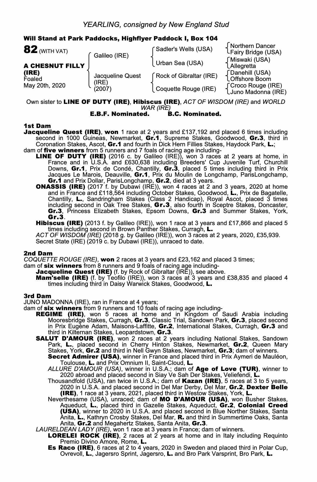 October Yearling Sale, Book 1 2022 lot 1 F. 2021, New England Stud=>Voute Sales Agent / Nawara Stud 500,000 gns