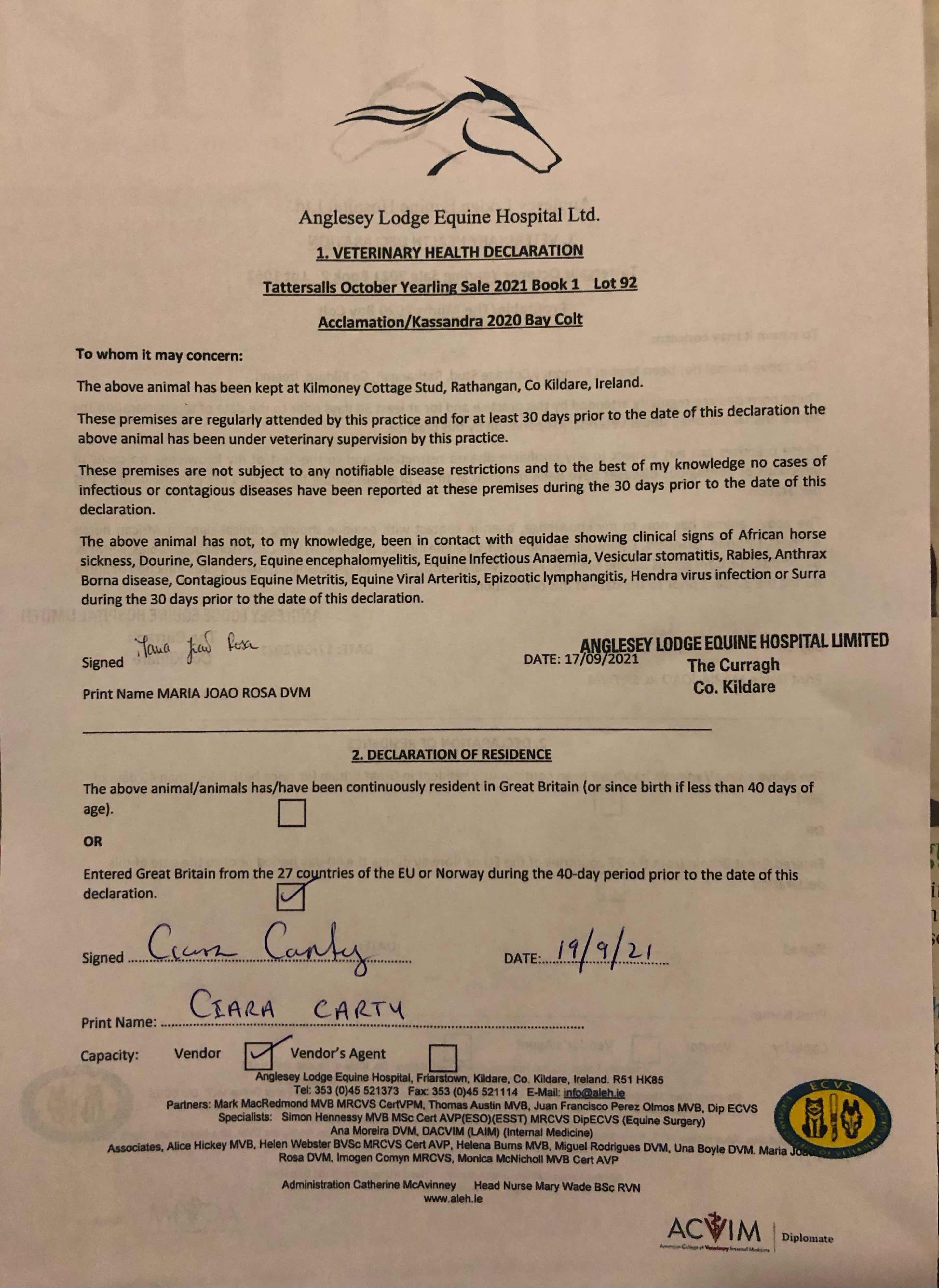 Consignor: Kilmoney Cottage Stud, Ireland