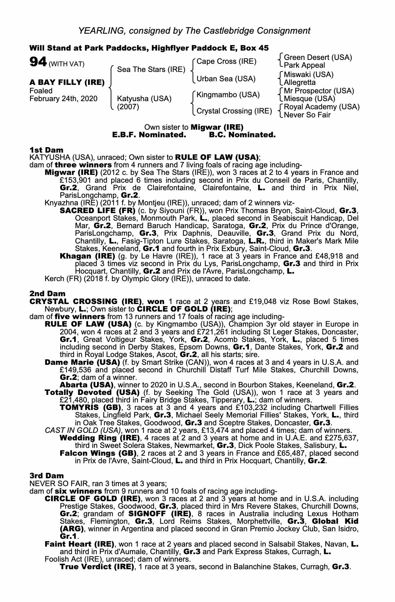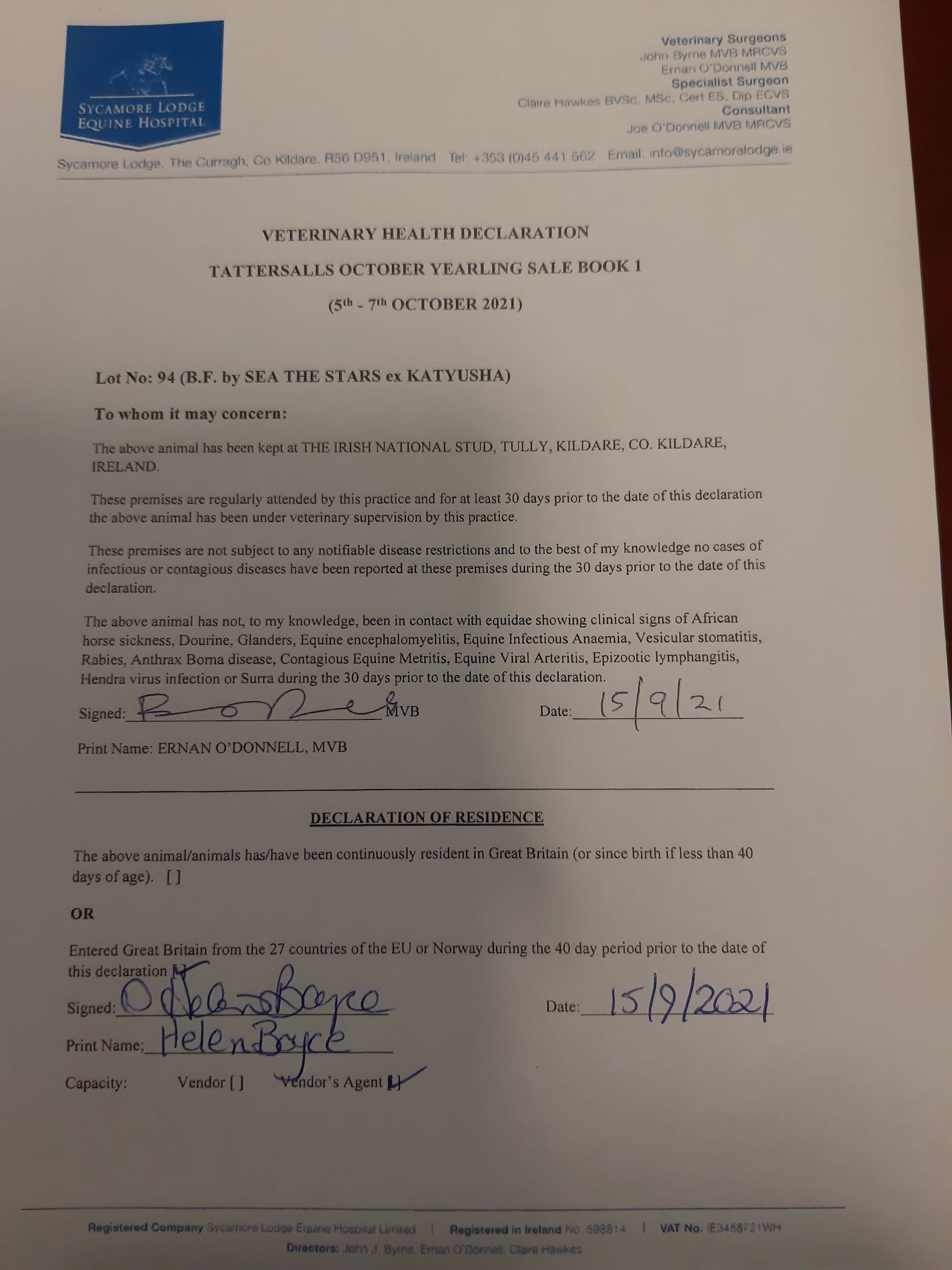 September Yearling Sale 2023 lot 223 F. by Invincible Spirit (IRE) 2022, Irish National Stud=>Vendor €35,000