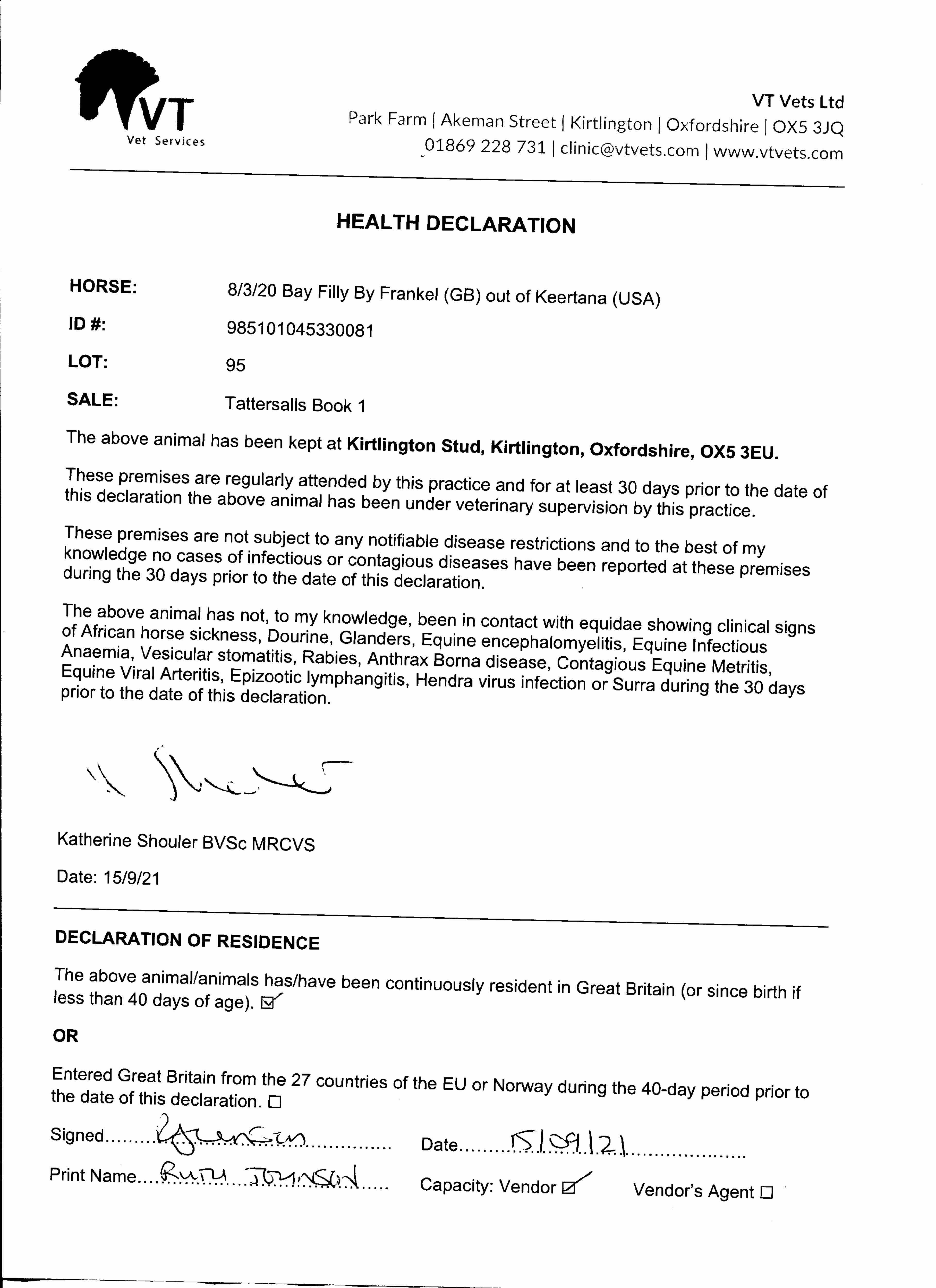 Contact: Chris Budgett ✆ 07850 006800 ✉ info@kirtlingtonstud.com