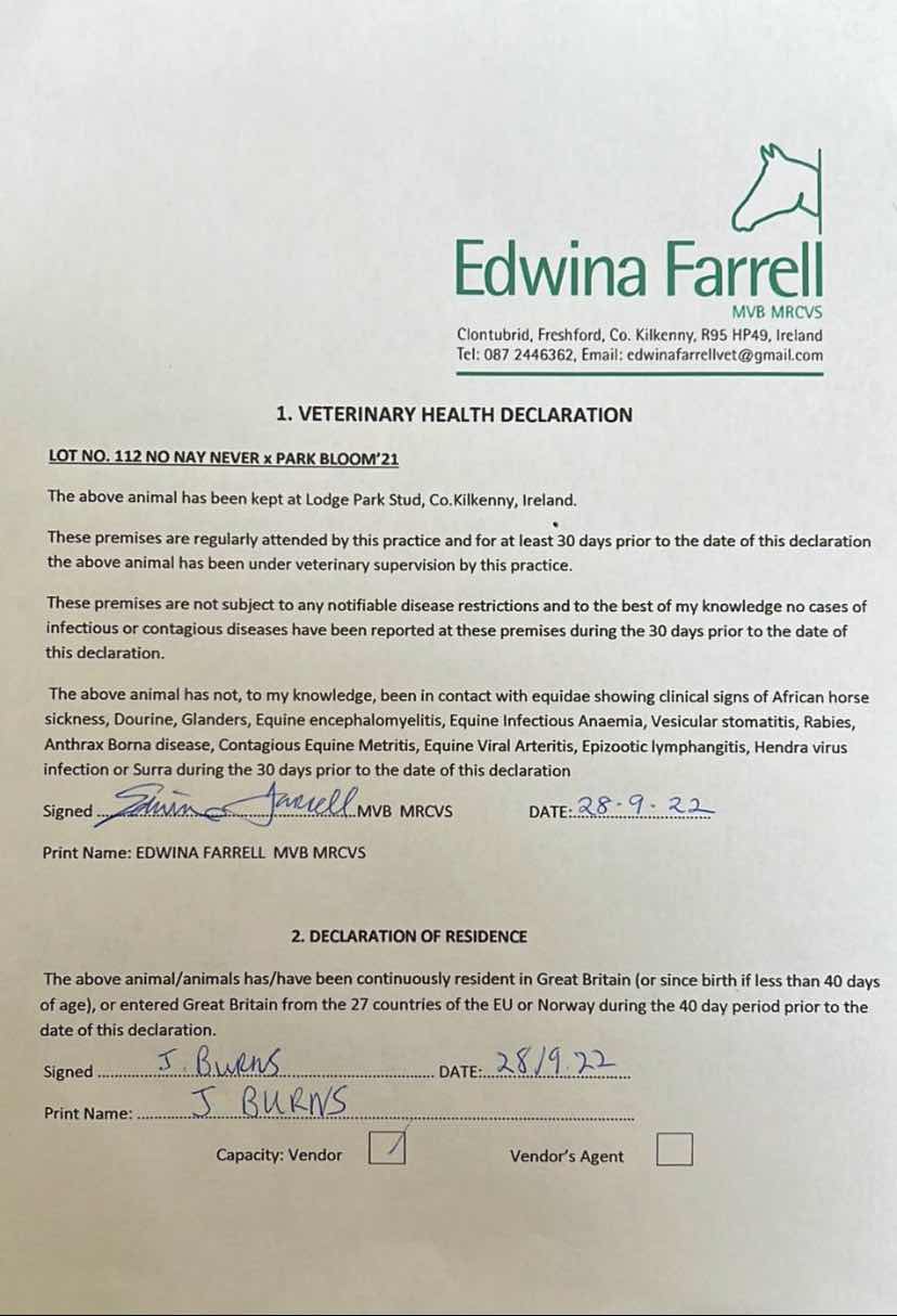Consignor: Lodge Park Stud, Ireland