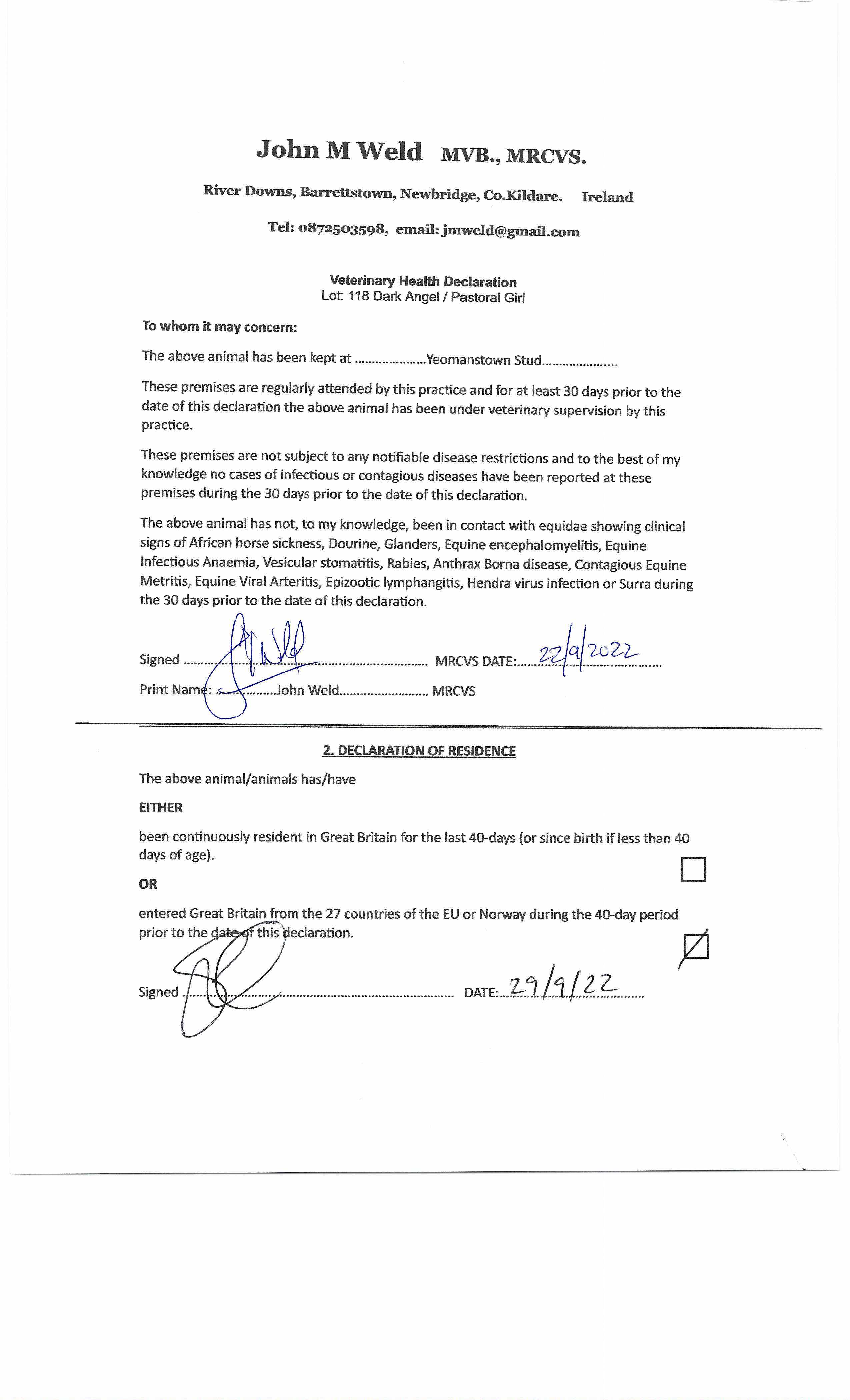 Consignor: Yeomanstown Stud, Ireland