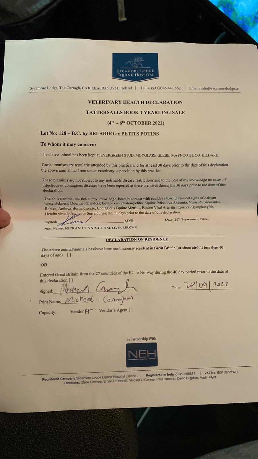 Contact: Michéal Conaghan ✆ +353(87)7796540 ✉ Evergreenbloodstock@gmail.com
