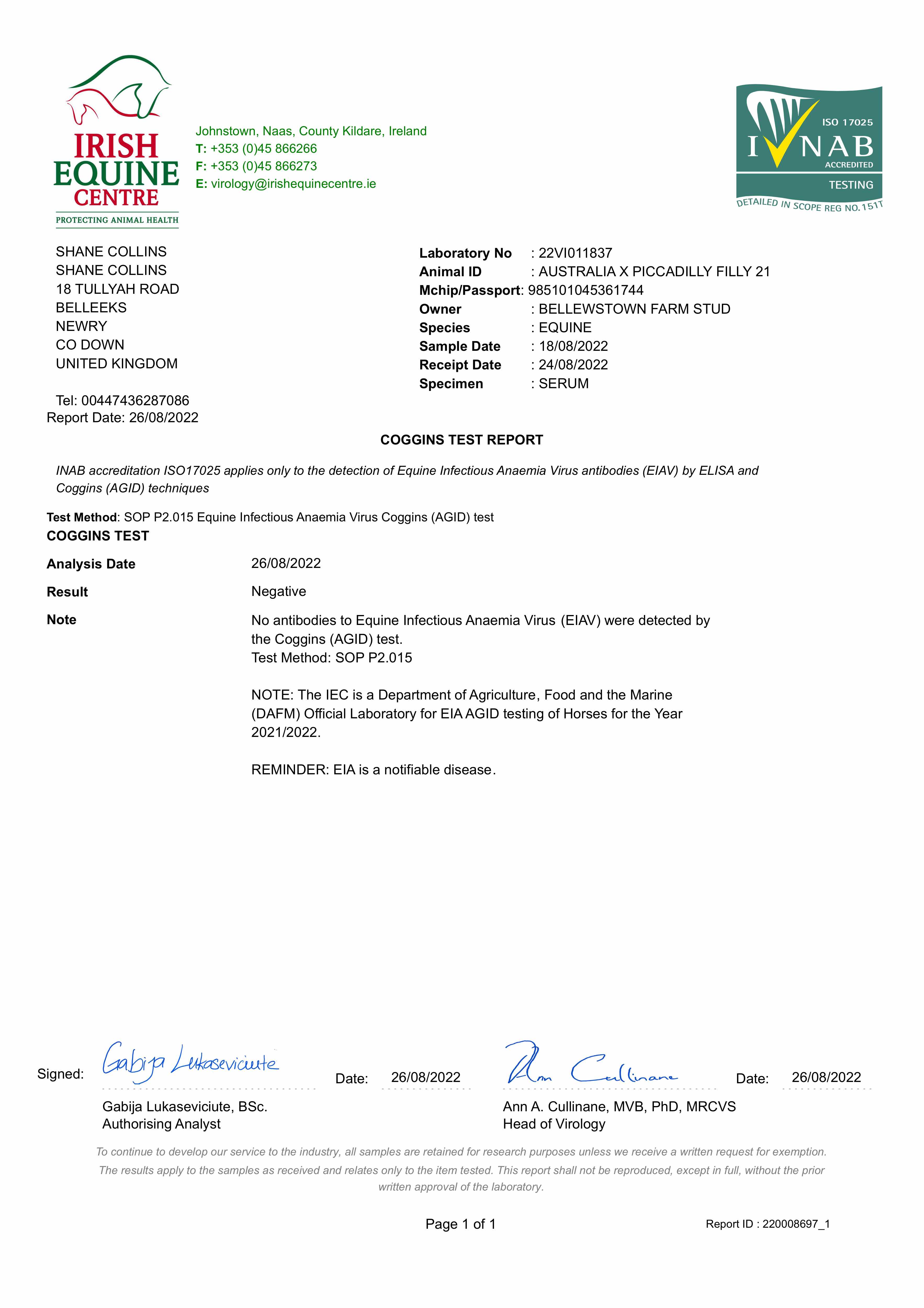 Consignor: Bellewstown Farm Stud