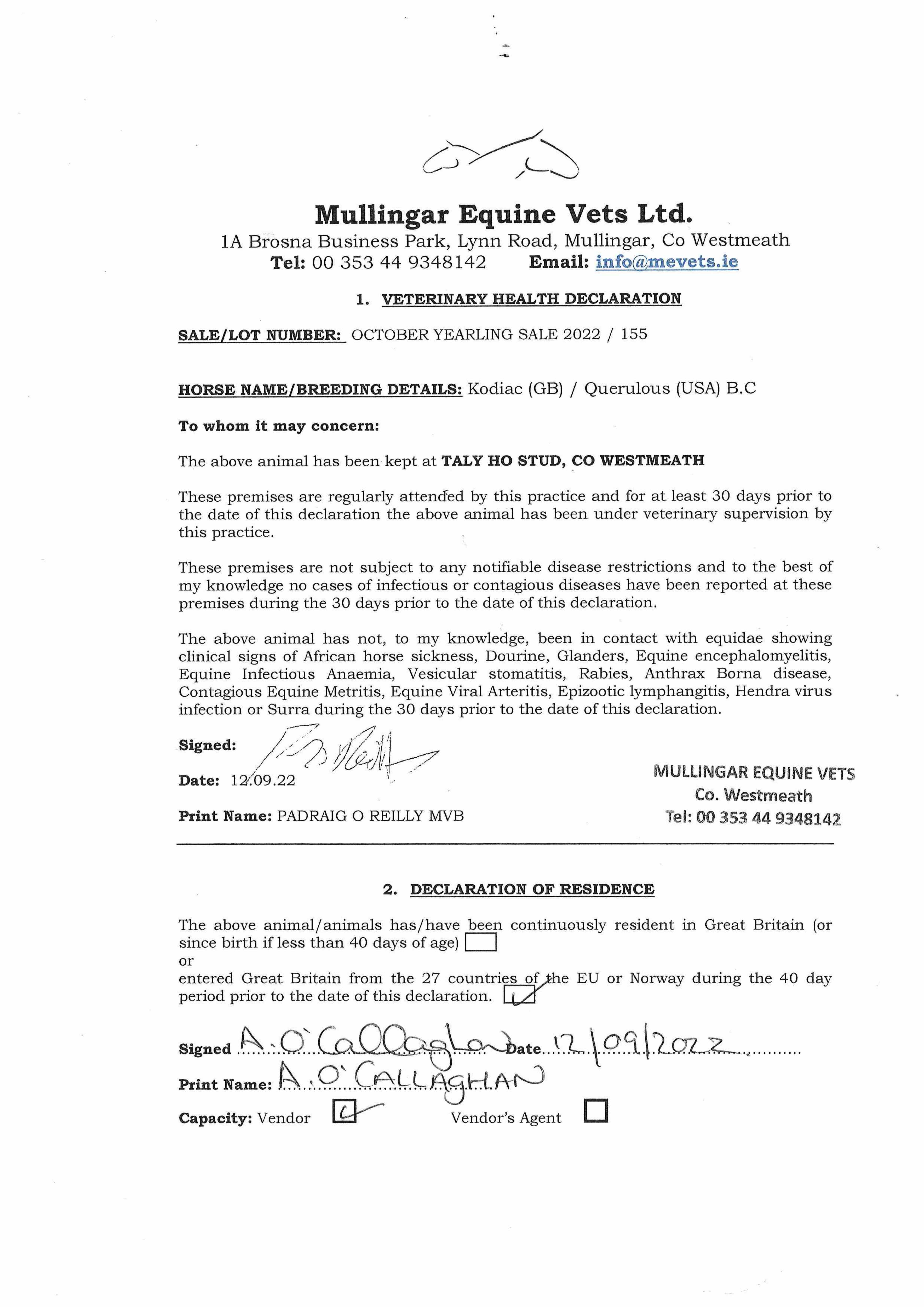Consignor: Tally-Ho Stud, Ireland