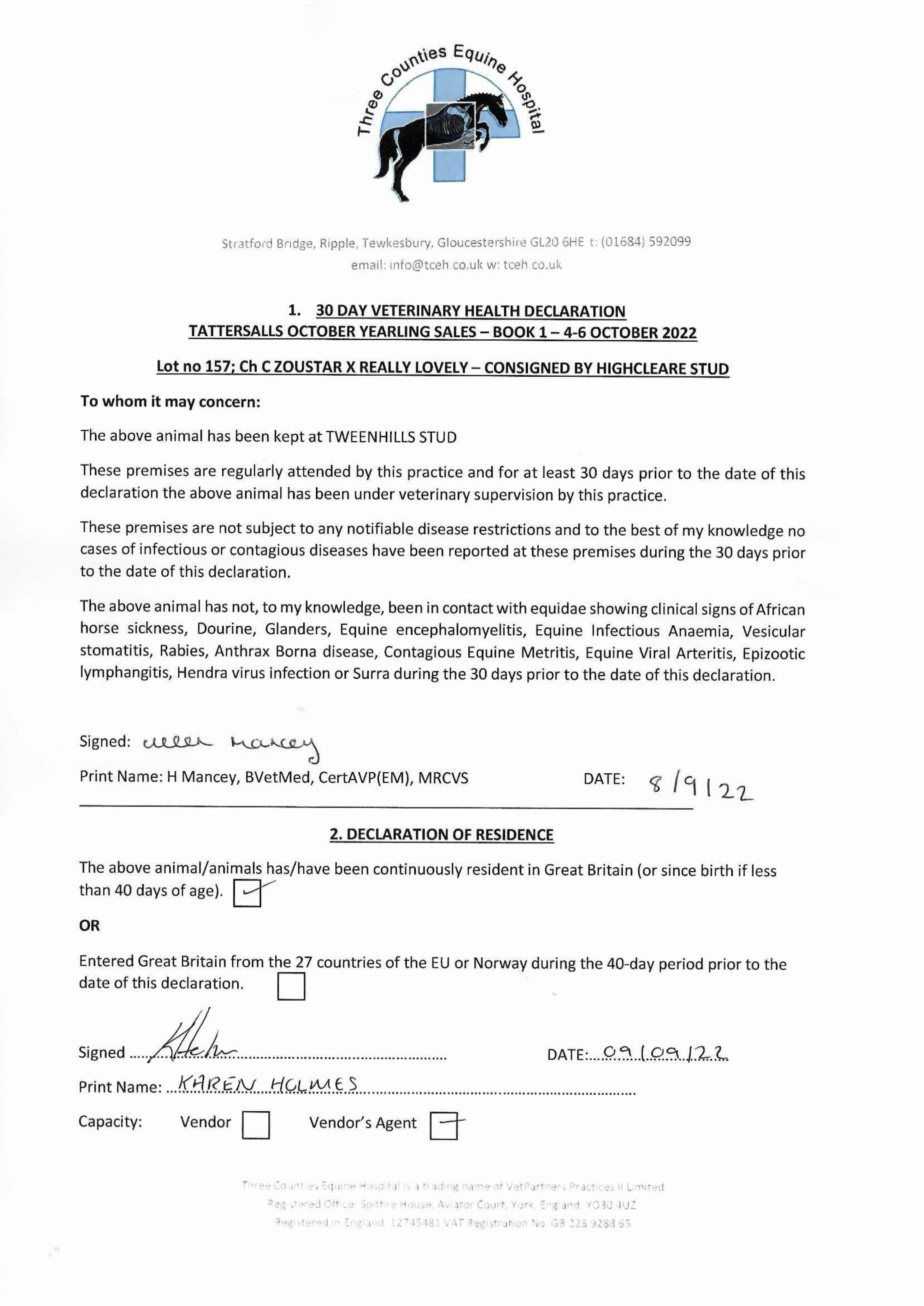 Consignor: Highclere Stud
