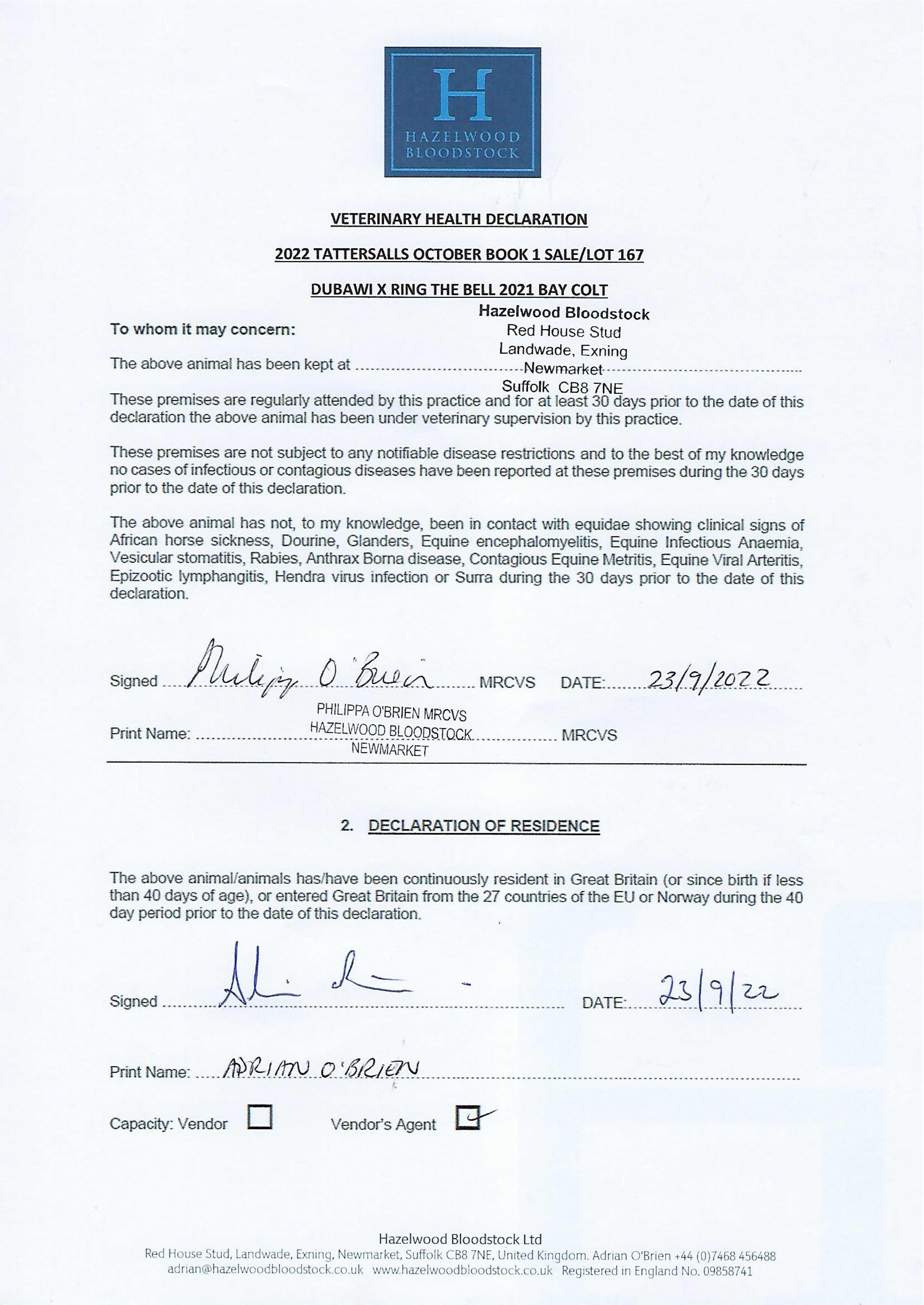 Contact: Adrian O'Brien ✆ +447468456488 ✉ adrian@hazelwoodbloodstock.co.uk
