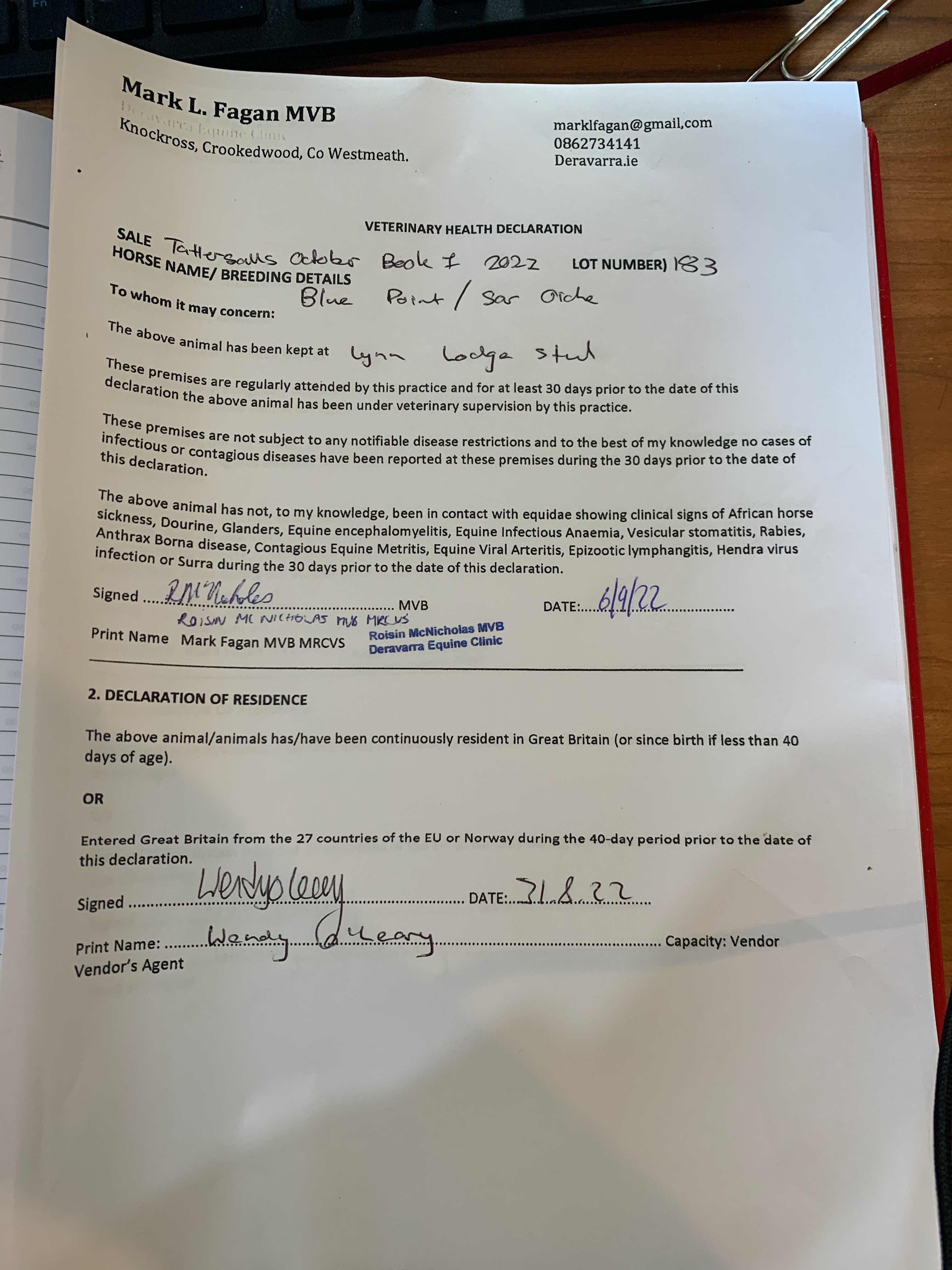 Consignor: Lynn Lodge Stud, Ireland