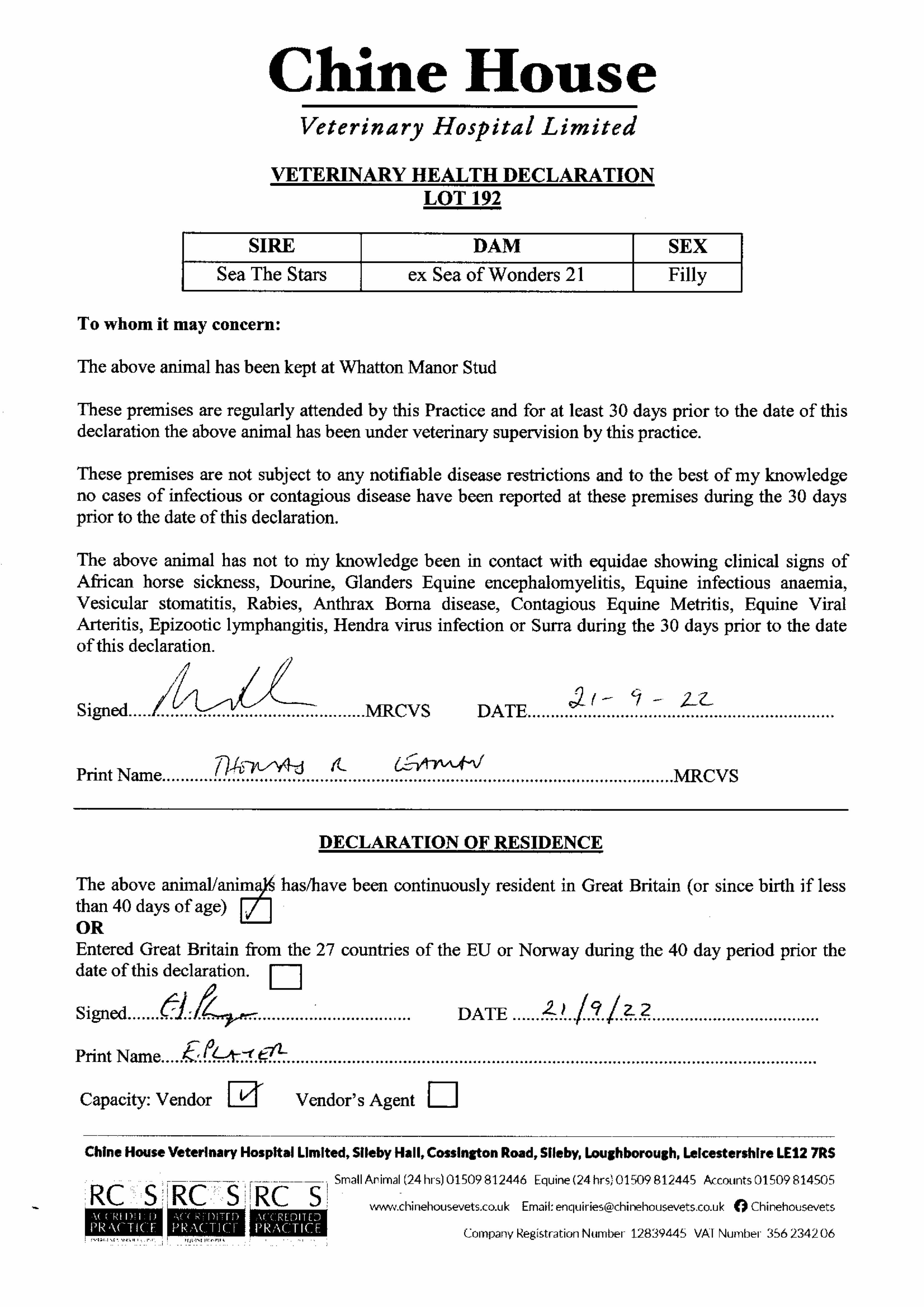 Consignor: Whatton Manor Stud