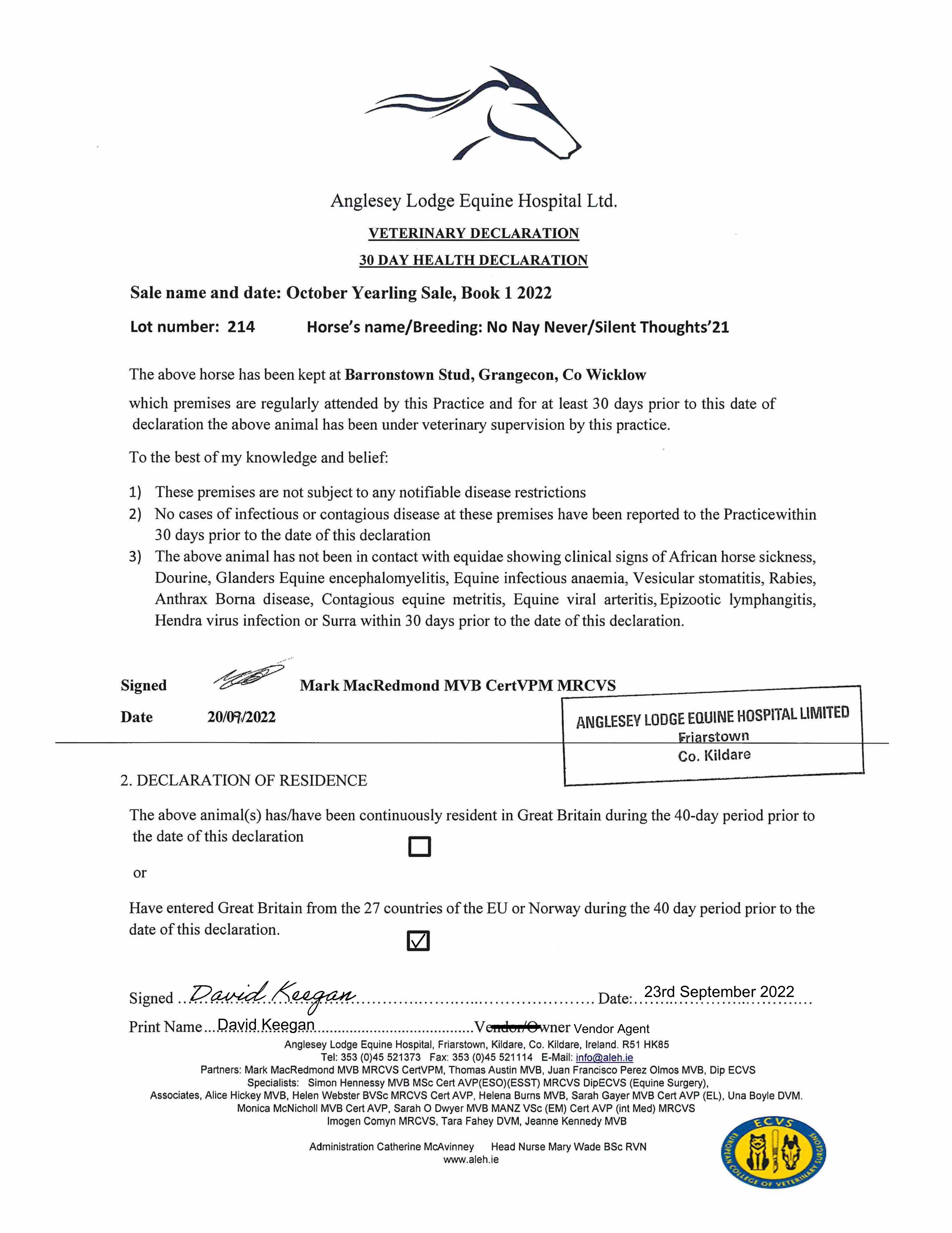 Consignor: Barronstown Stud, Ireland