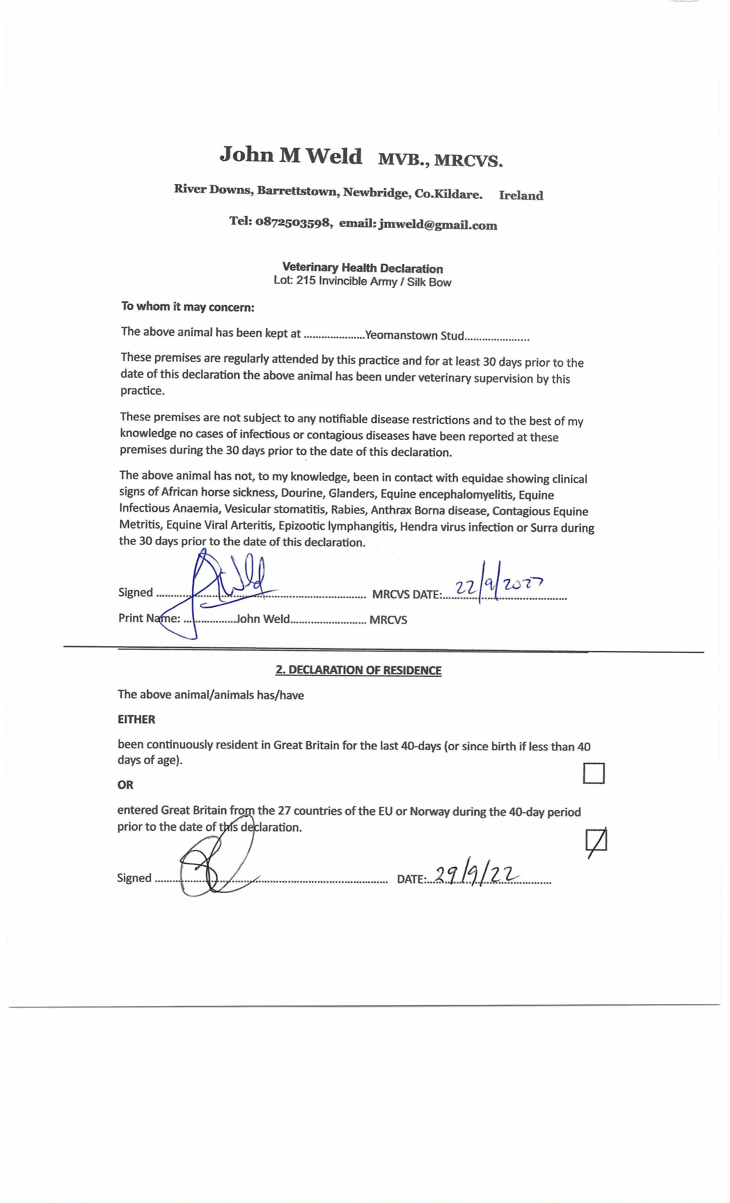 December Mare Sale 2023 lot 1985 Wings of A Dove (IRE) (M. by Dark Angel (IRE)), The National Stud Ltd.=>Yeomanstown Stud 42,000 gns