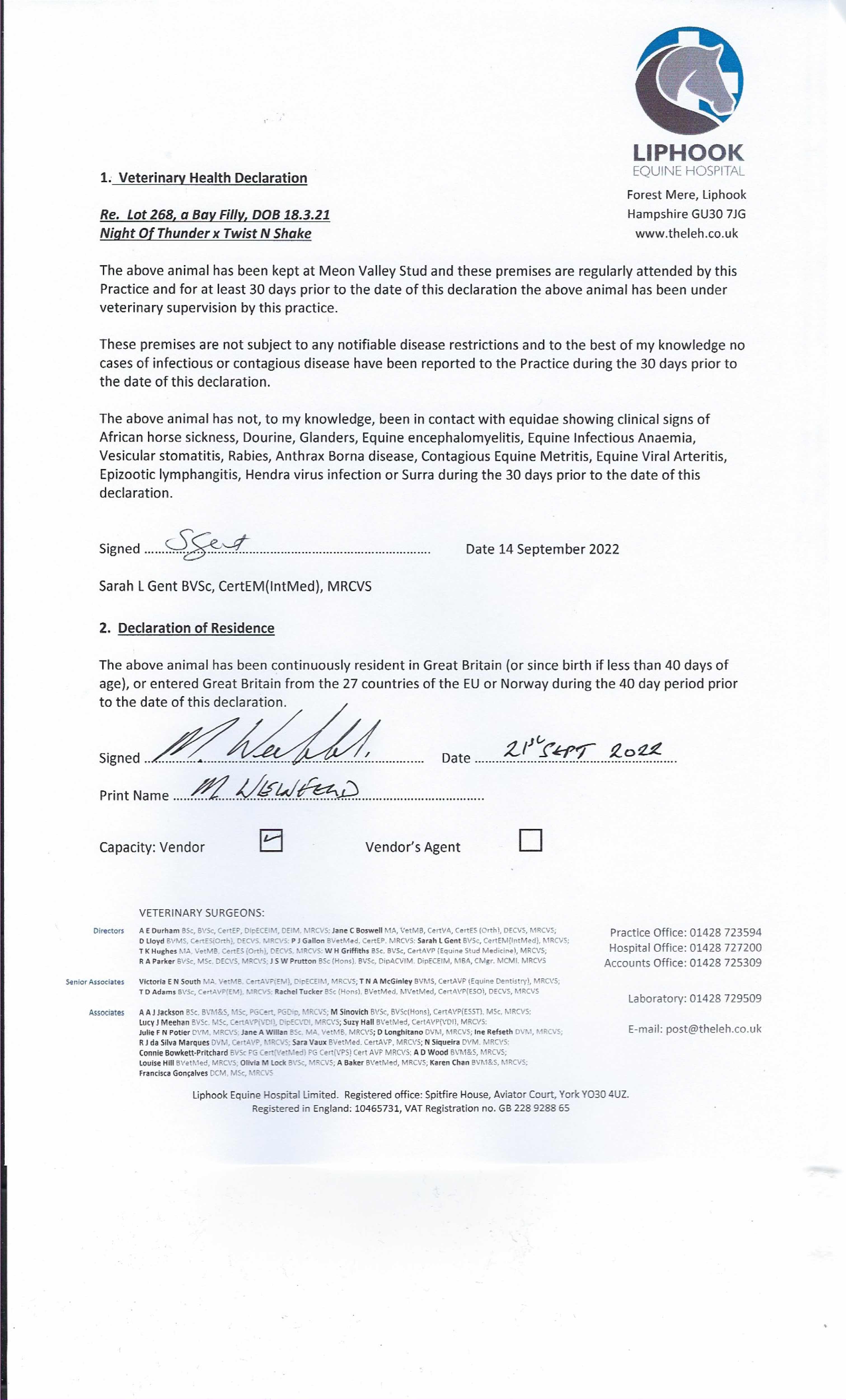 Consignor: Meon Valley Stud
