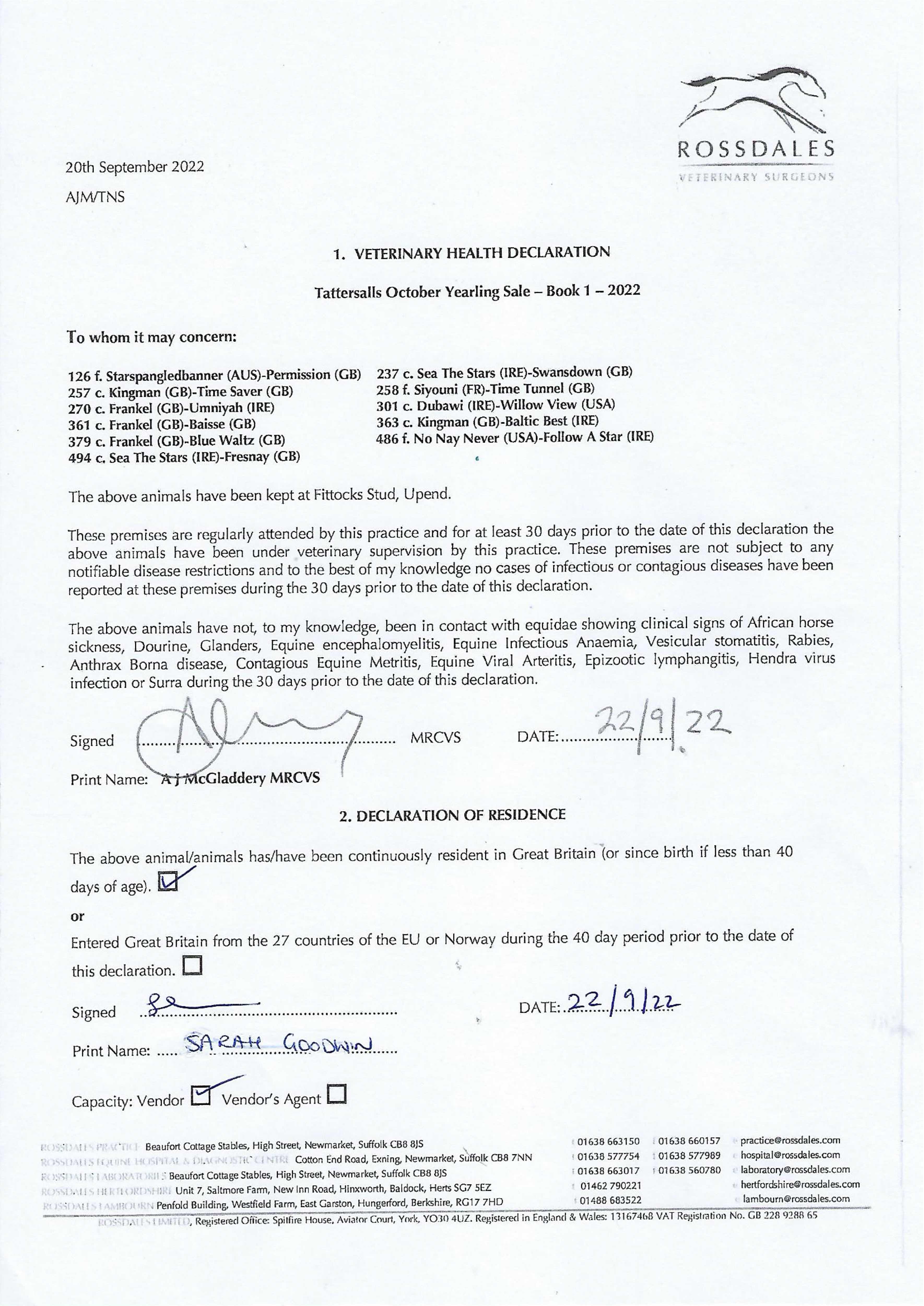 October Yearling Sale, Book 2 2023 lot 792 F. by Kingman (GB) 2022, Fittocks Stud=>Vendor 44,000 gns