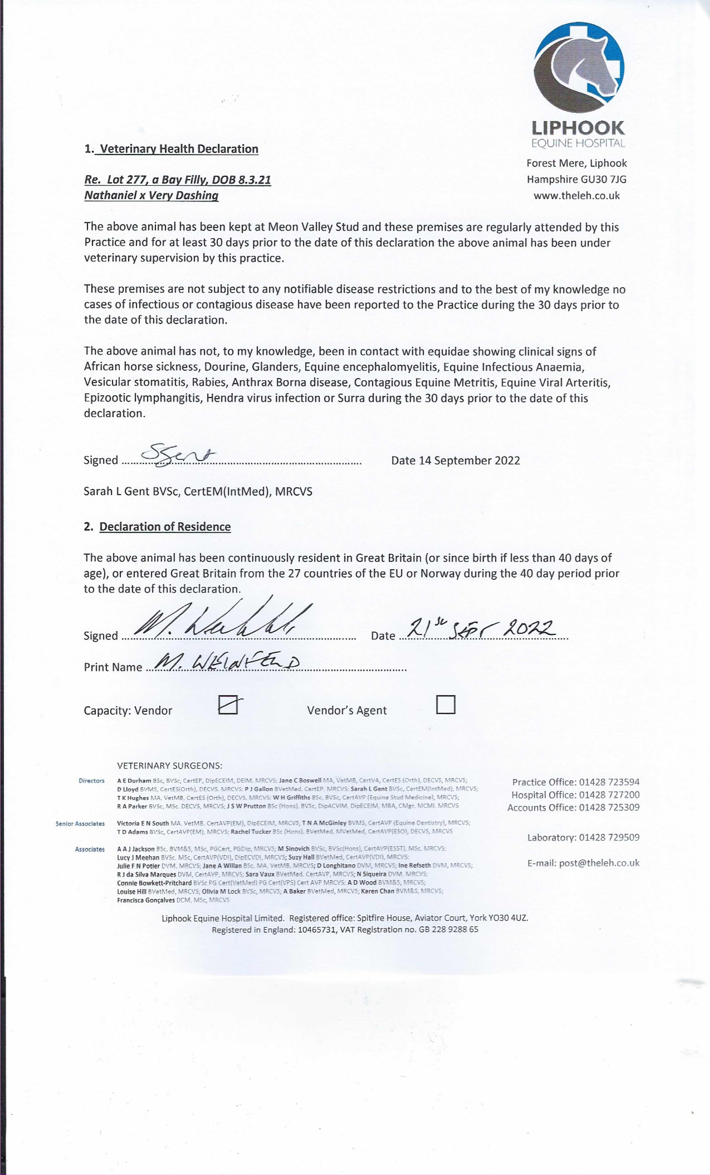 Consignor: Meon Valley Stud