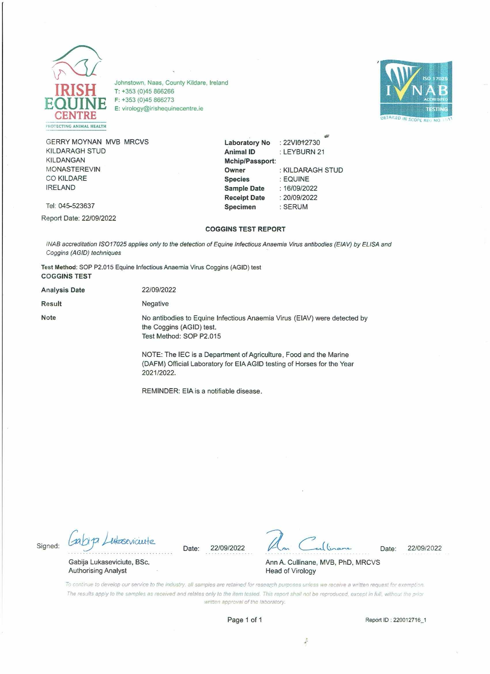 Consignor: Kildaragh Stud, Ireland (Agent)