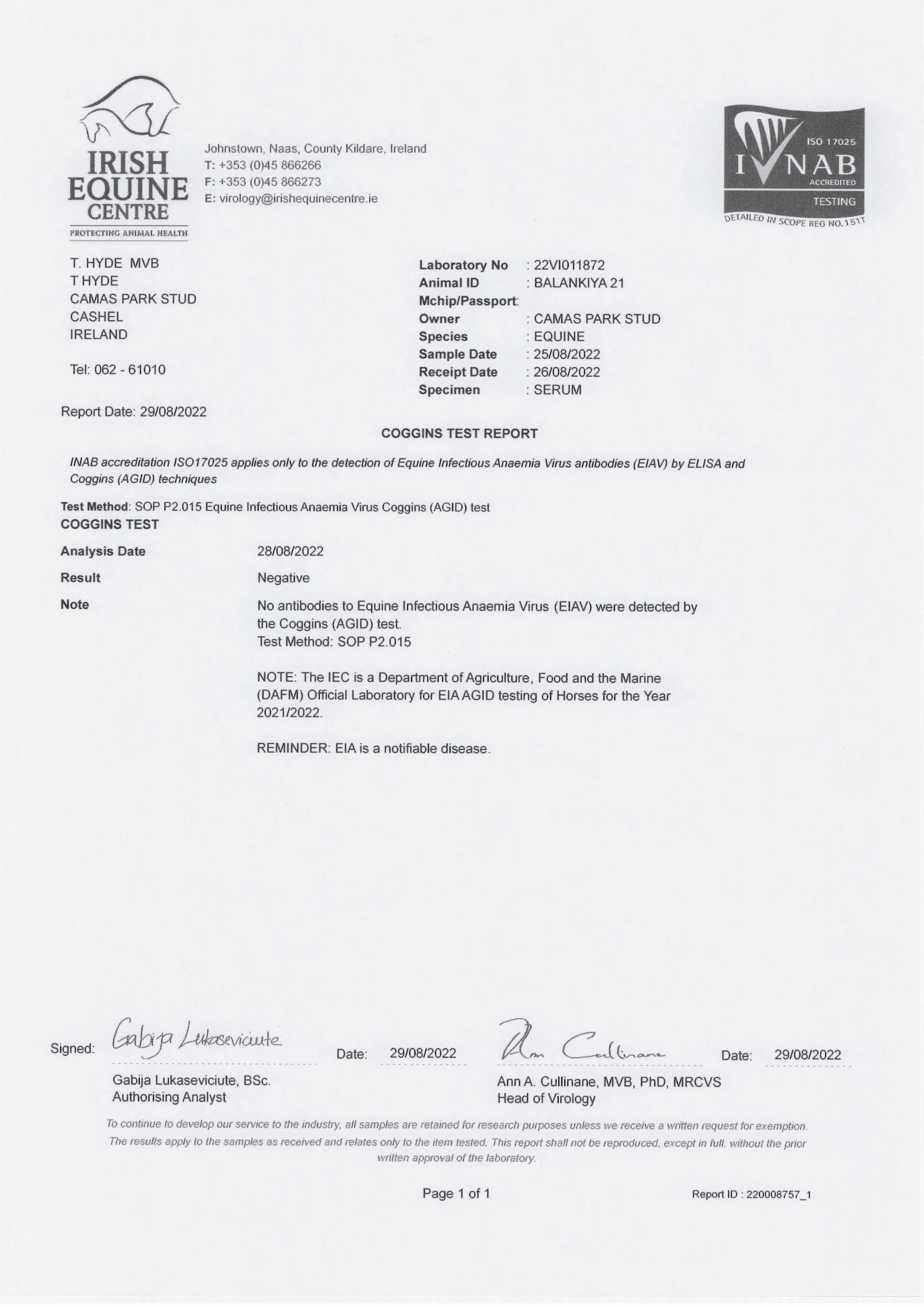 Consignor: Camas Park Stud, Ireland