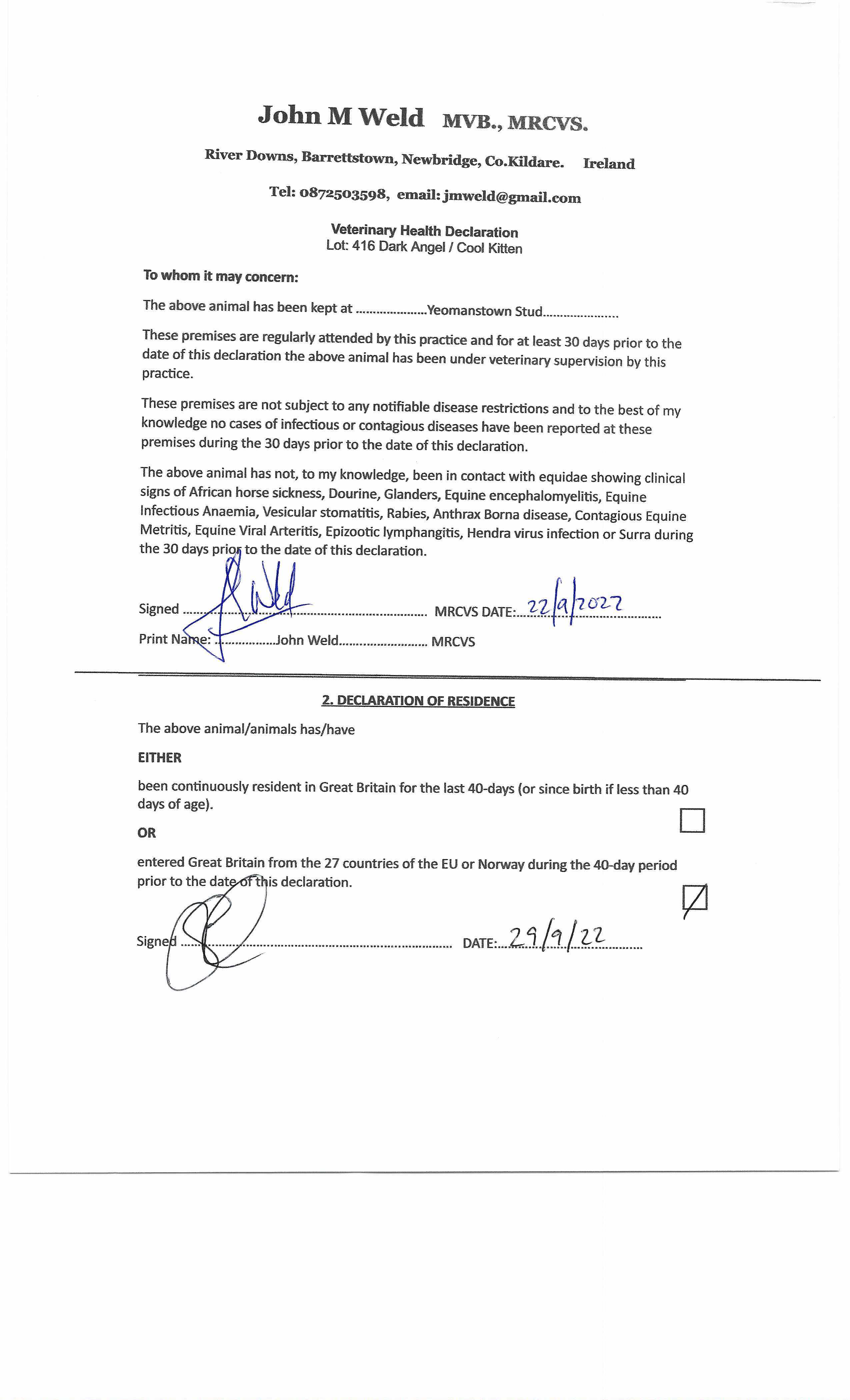 Consignor: Yeomanstown Stud, Ireland