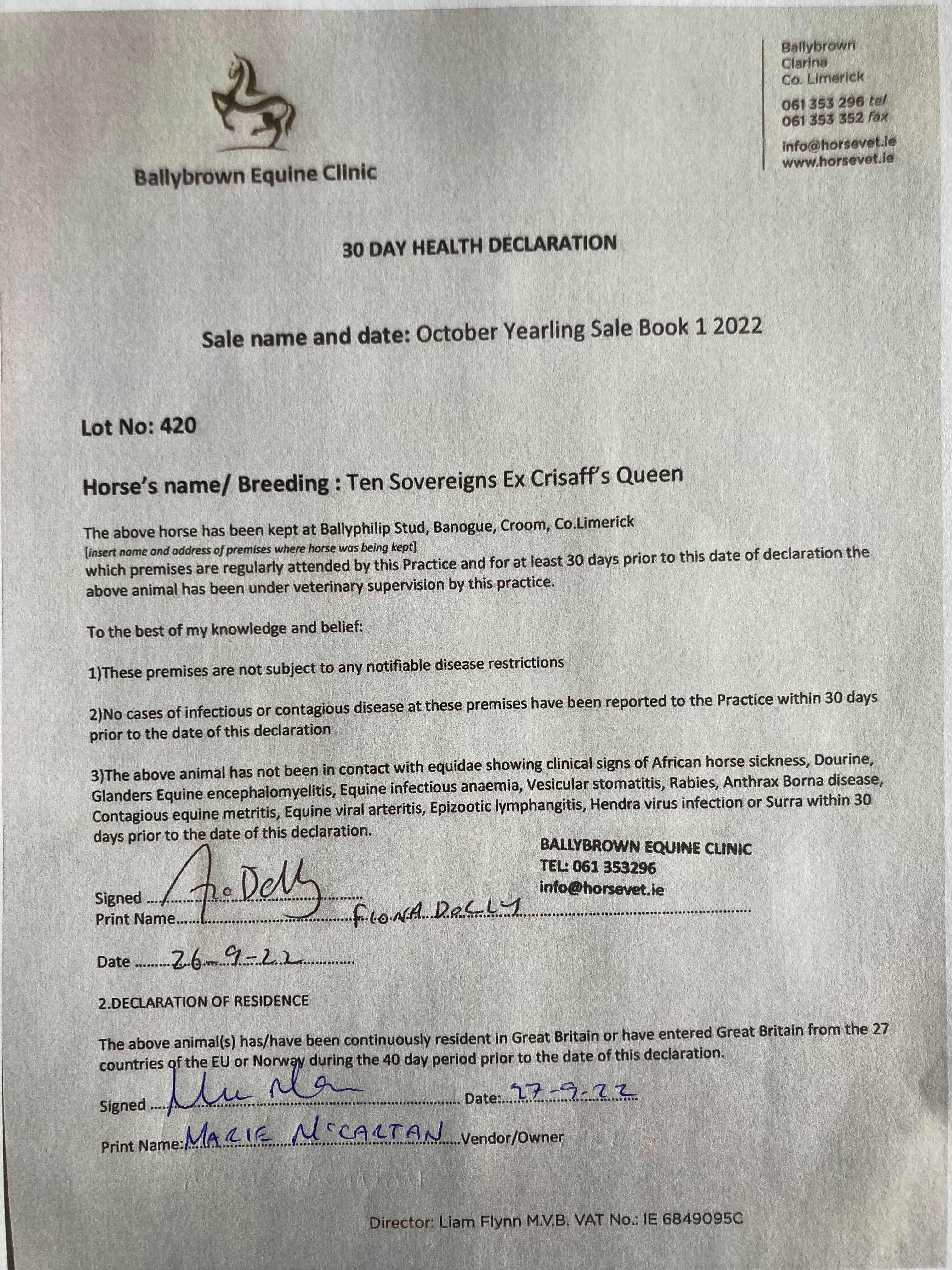 September Yearling Sale 2023 lot 84 F. by Acclamation (GB) 2022, Tinnakill House=>Razza Latina €30,000