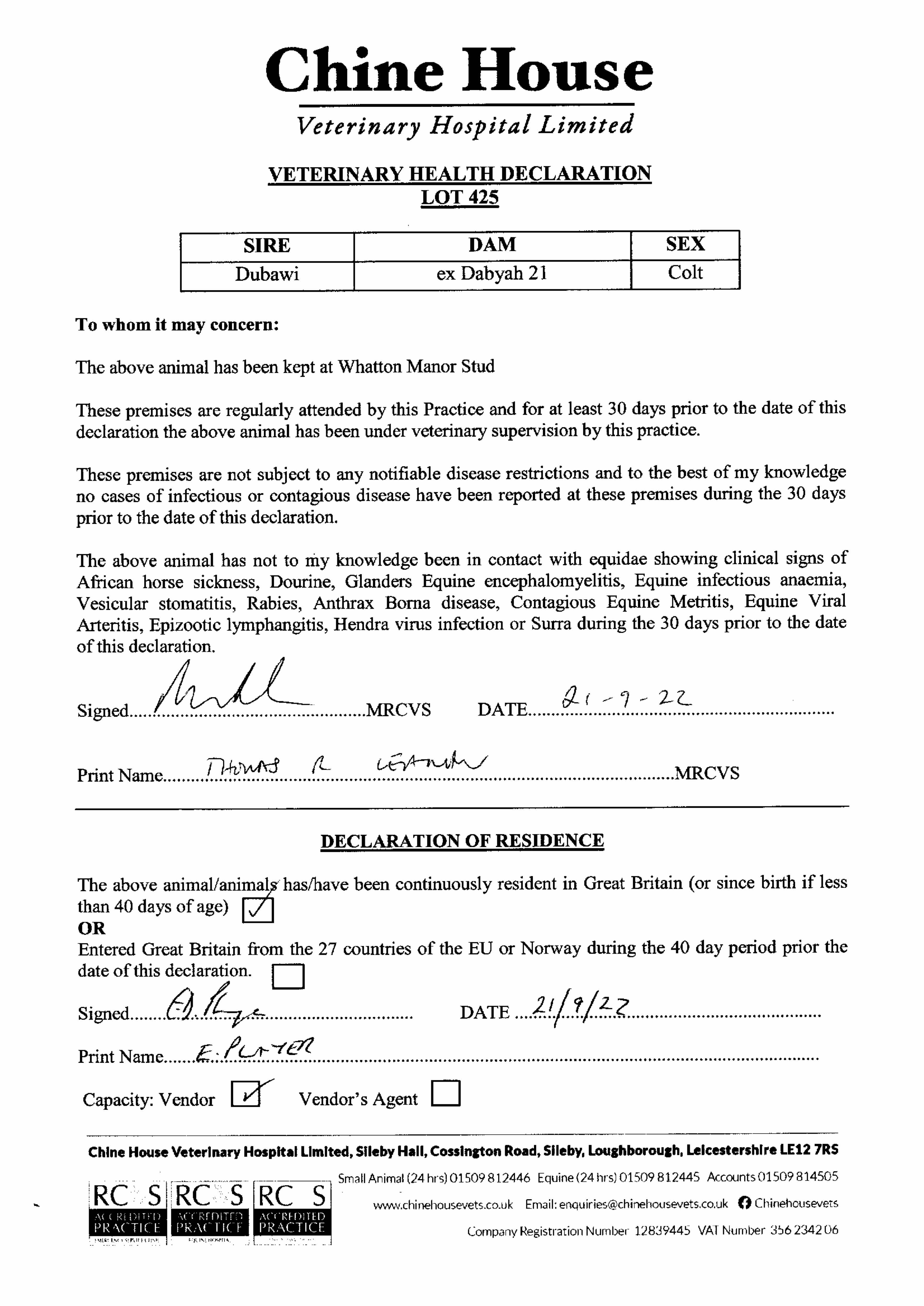 Consignor: Whatton Manor Stud
