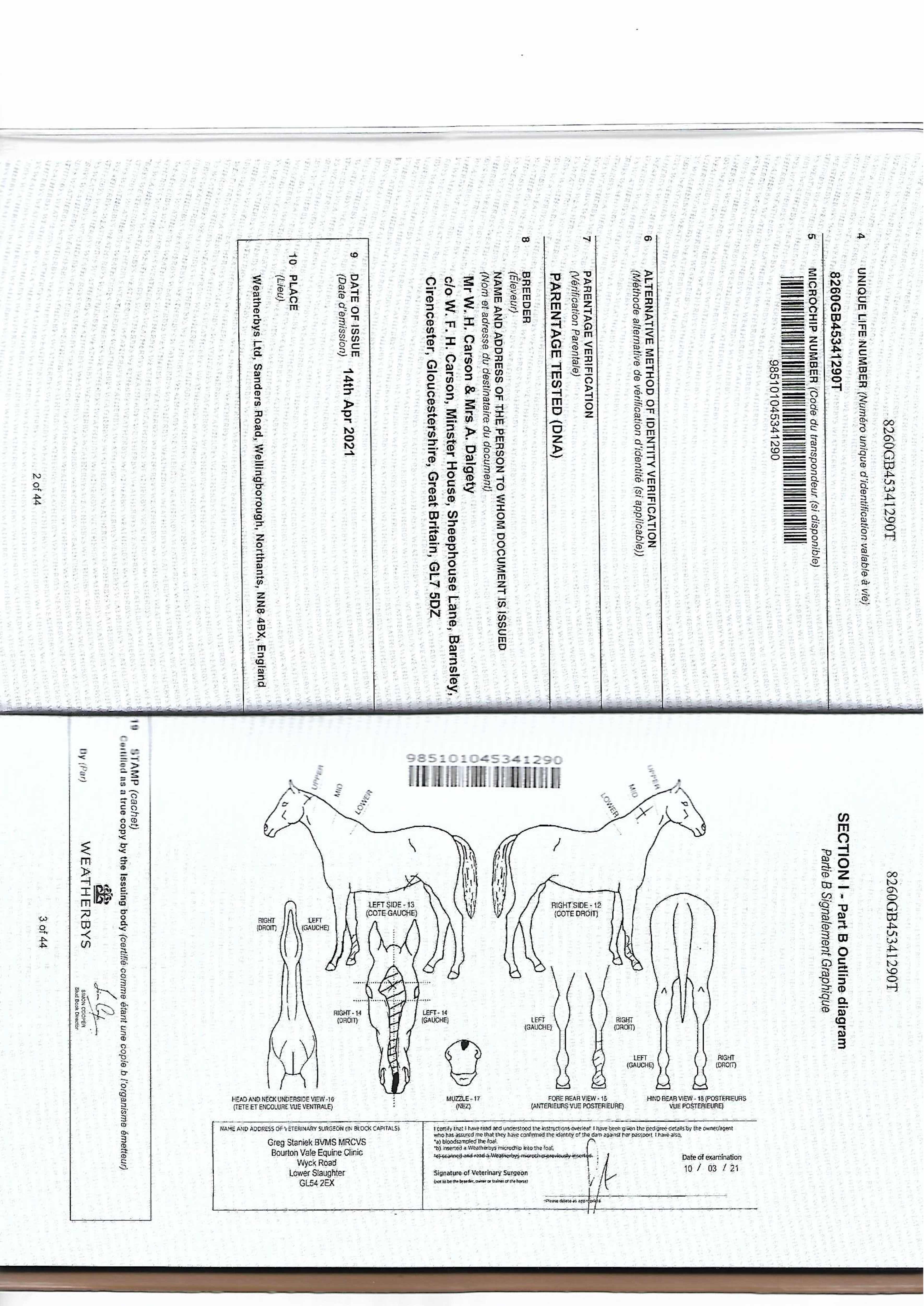 Contact: Mr W H Carson ✆ 07503659506 ✉ info@minsterstud.co.uk