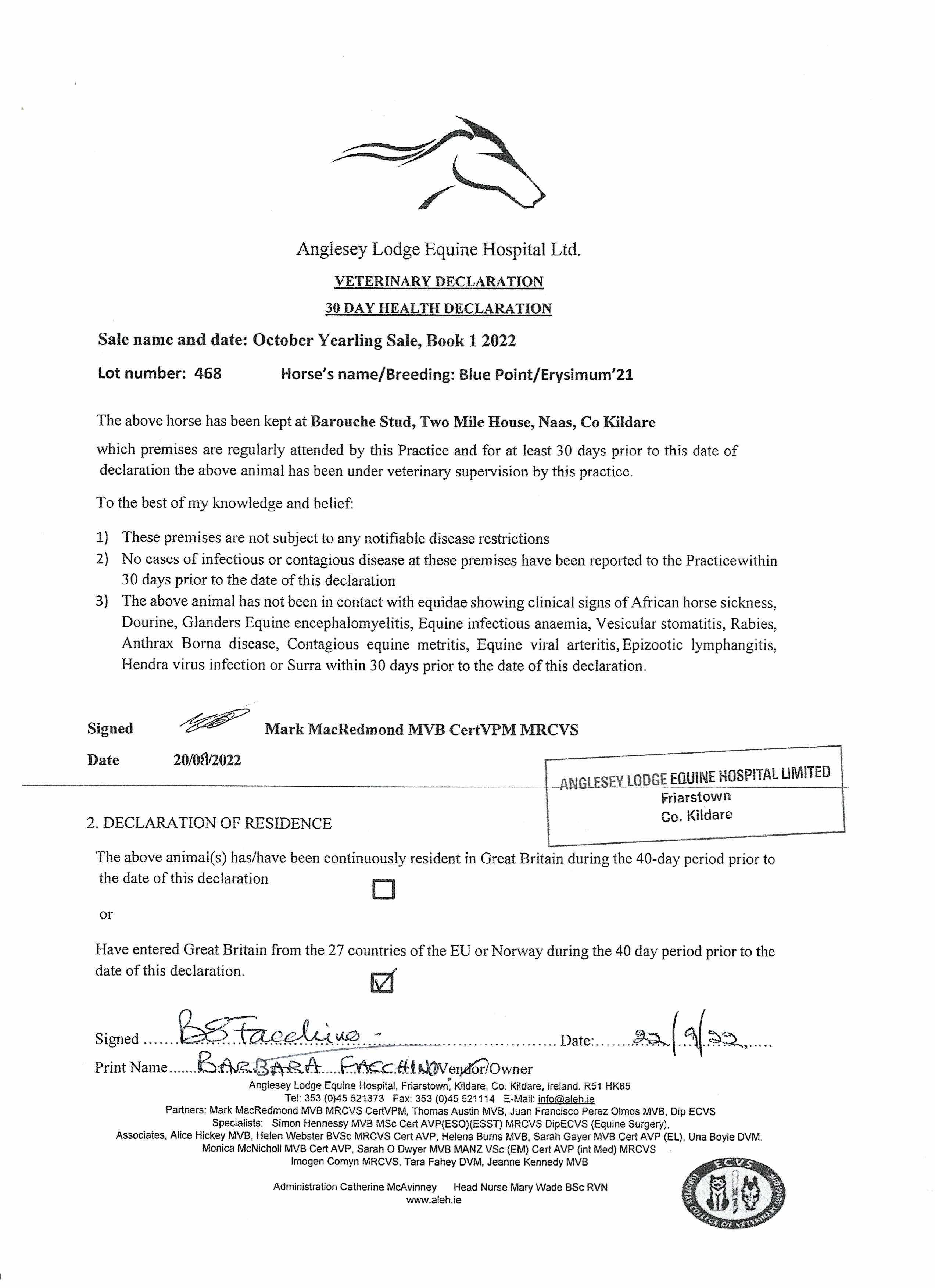 Consignor: Barouche Stud (Ireland) Ltd.