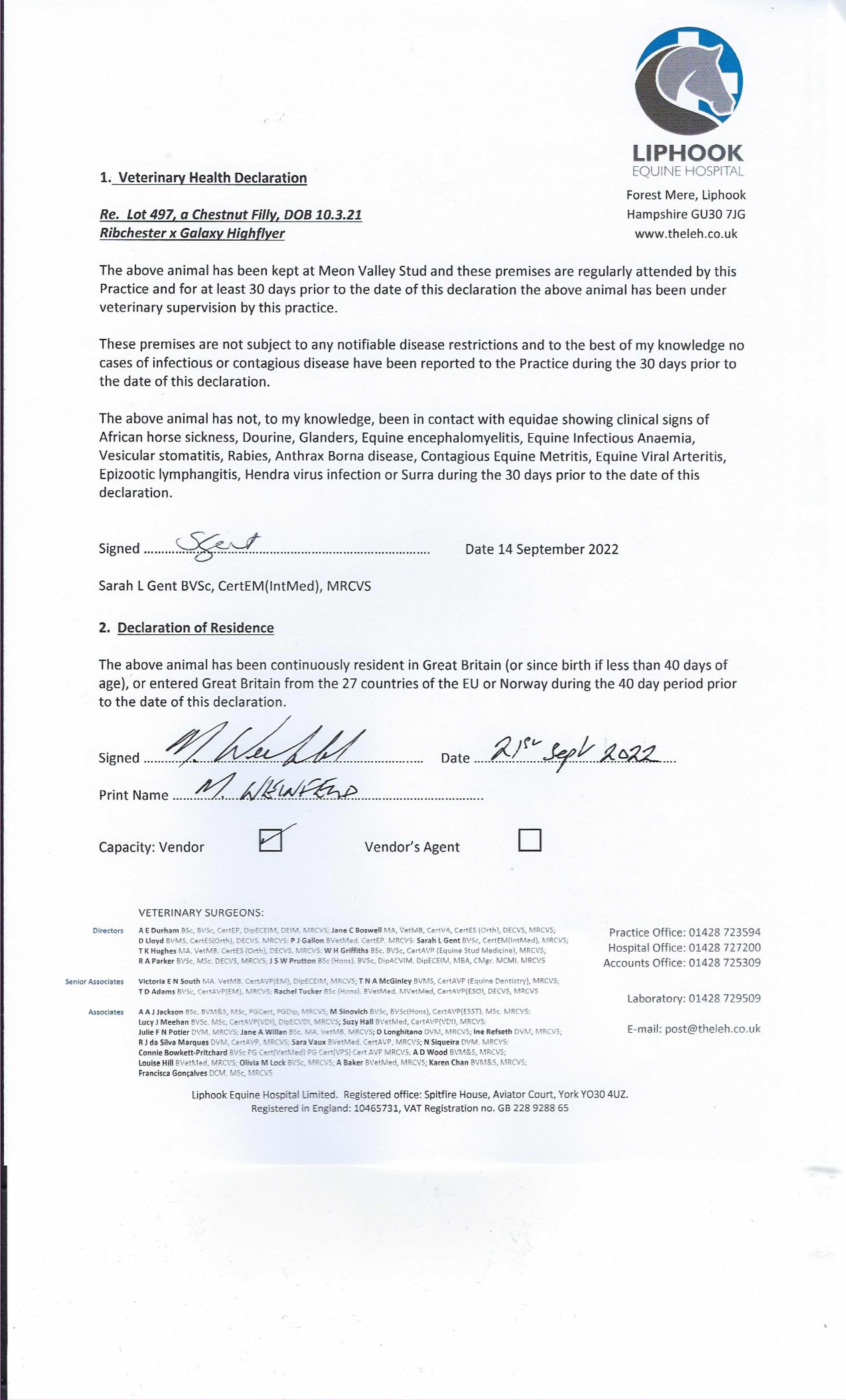 Consignor: Meon Valley Stud
