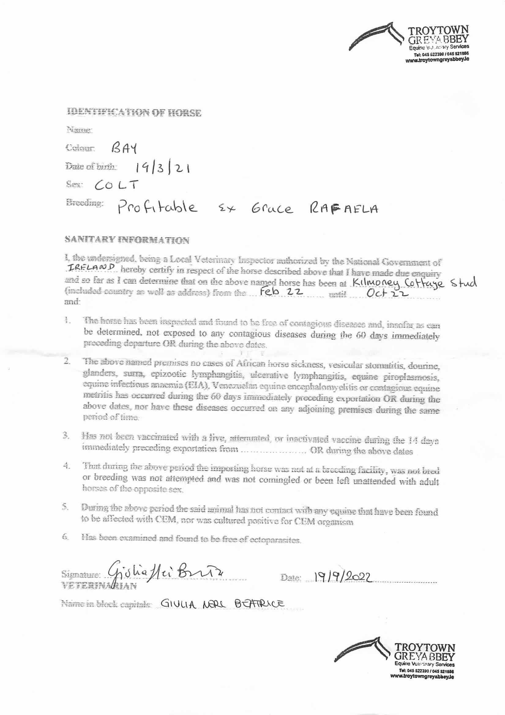 Consignor: Kilmoney Cottage Stud, Ireland