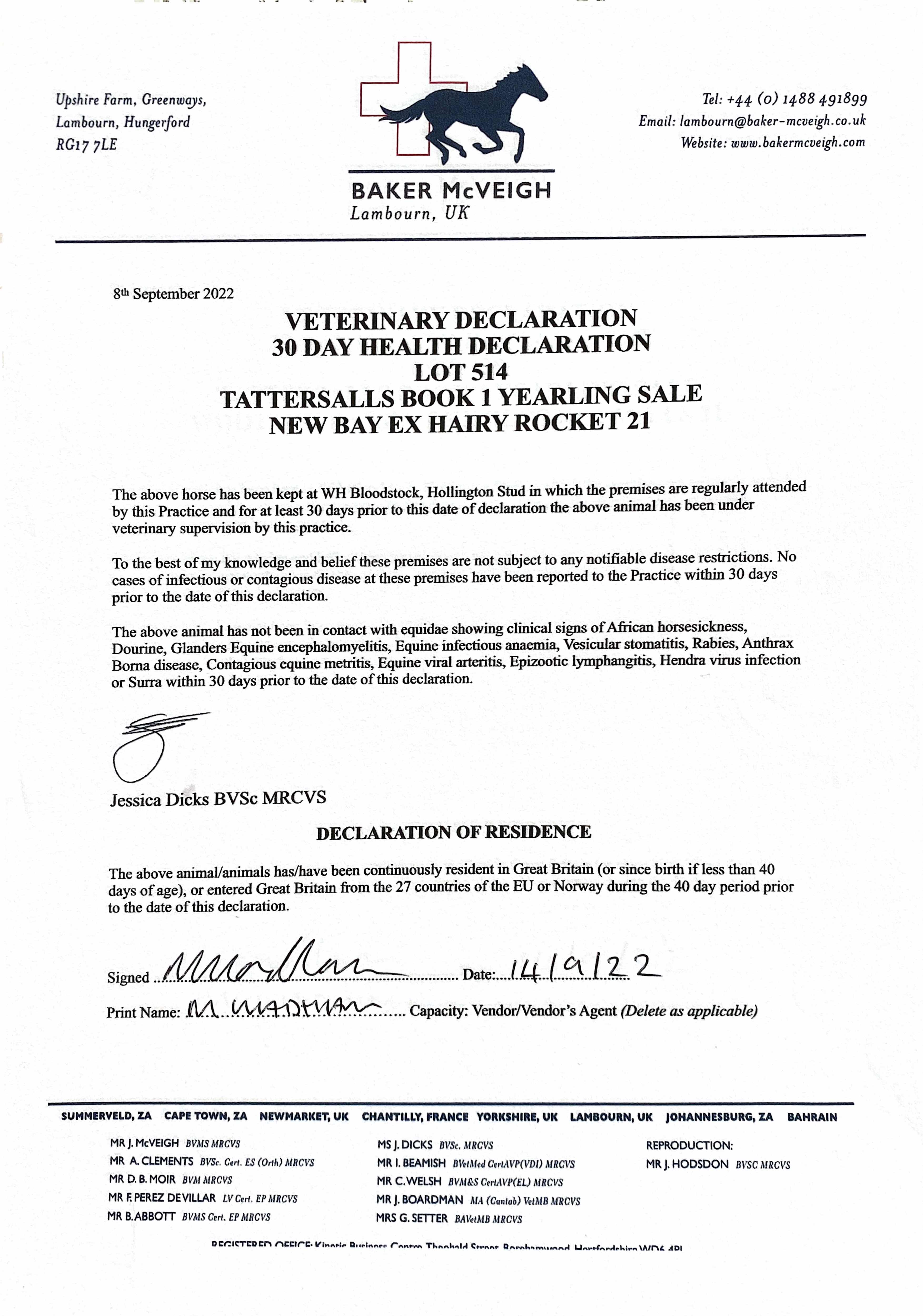 Lot 514 New Bay (GB) /Hairy Rocket (GB) Ch.C. (IRE)