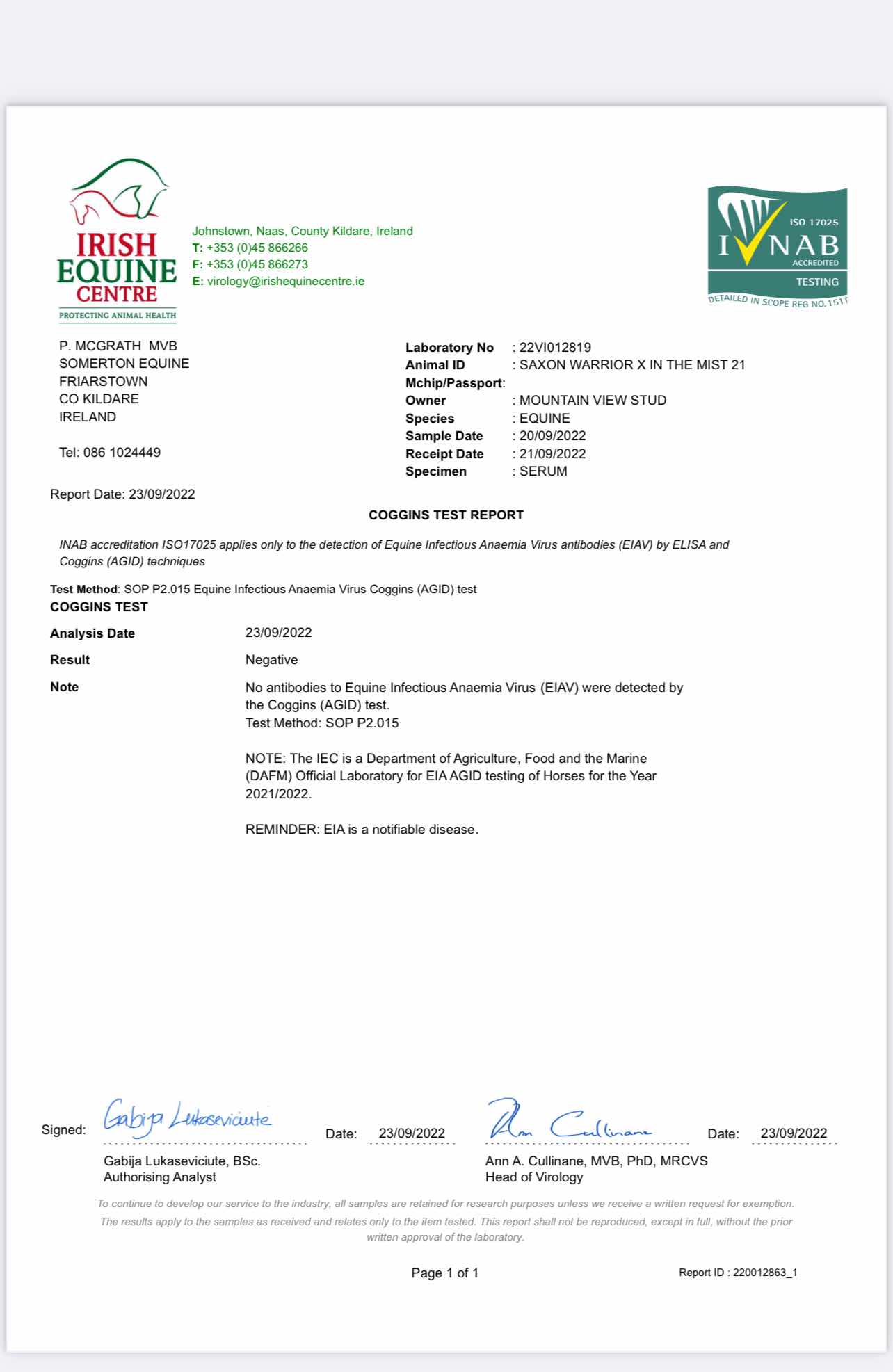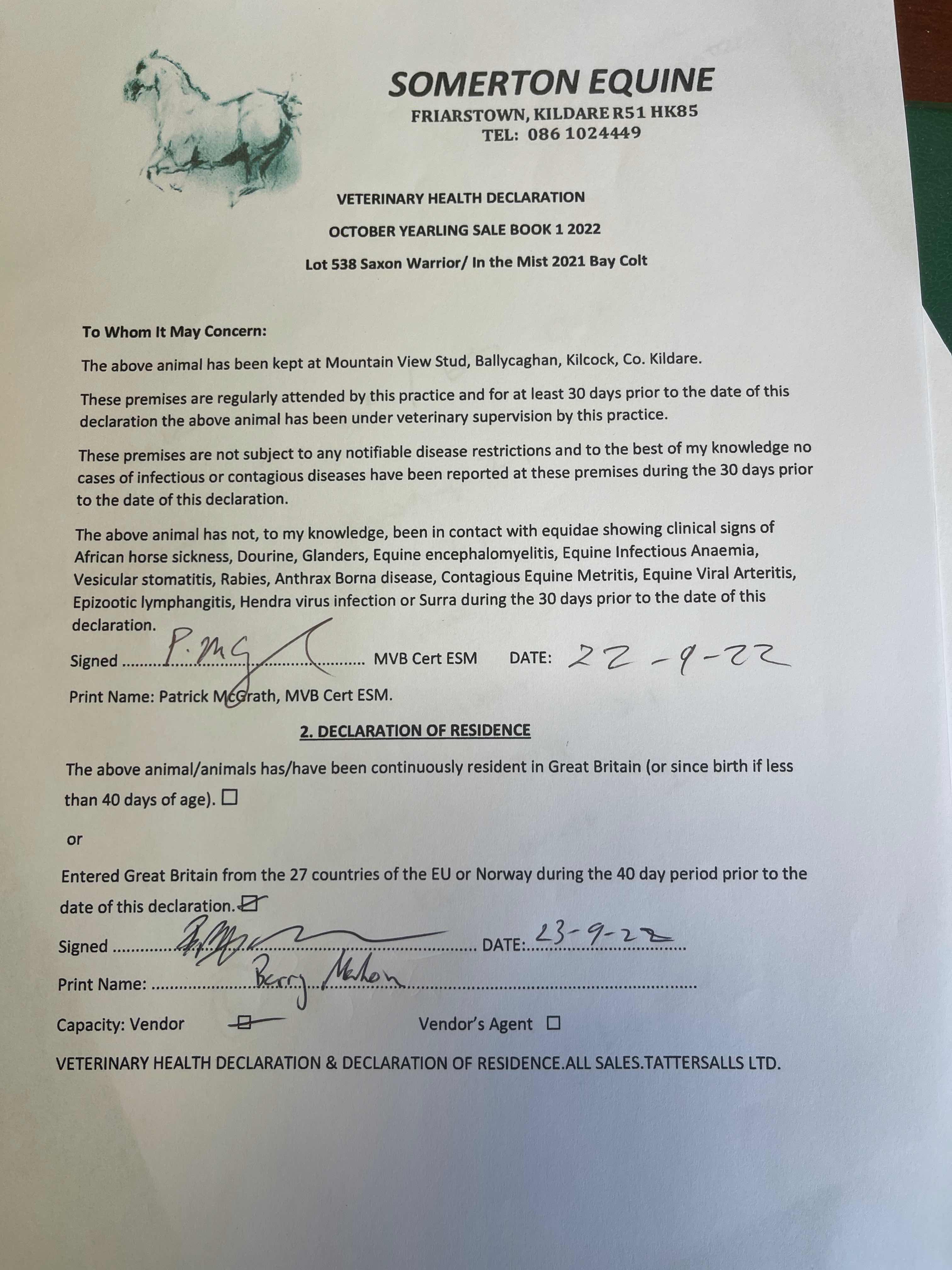 Consignor: Mountain View Stud, Ireland