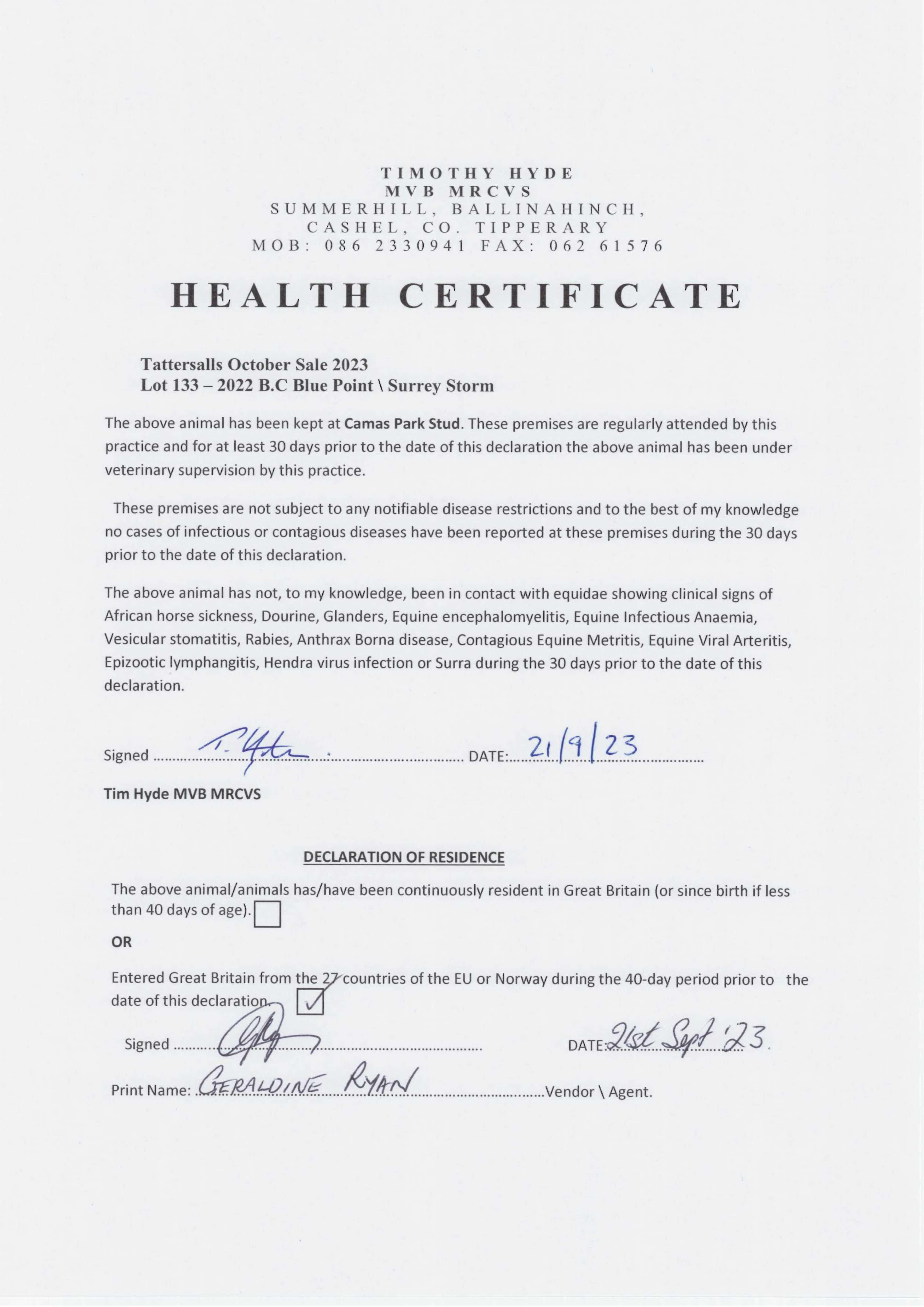 Consignor: Camas Park Stud, Ireland