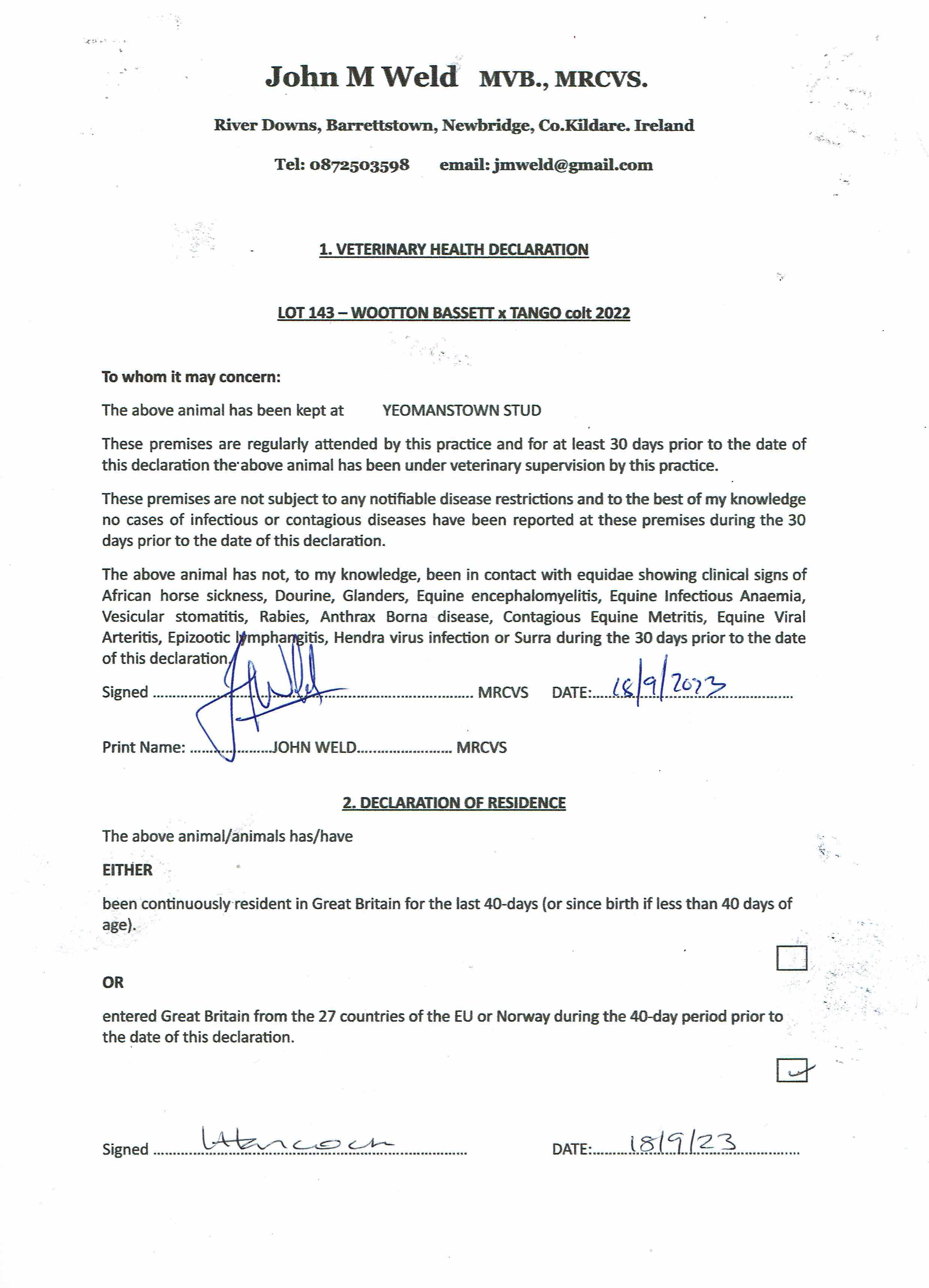 December Foal Sale 2022 lot 1075, Norelands Stud, Ireland=>Yeomanstown Stud 185,000 gns