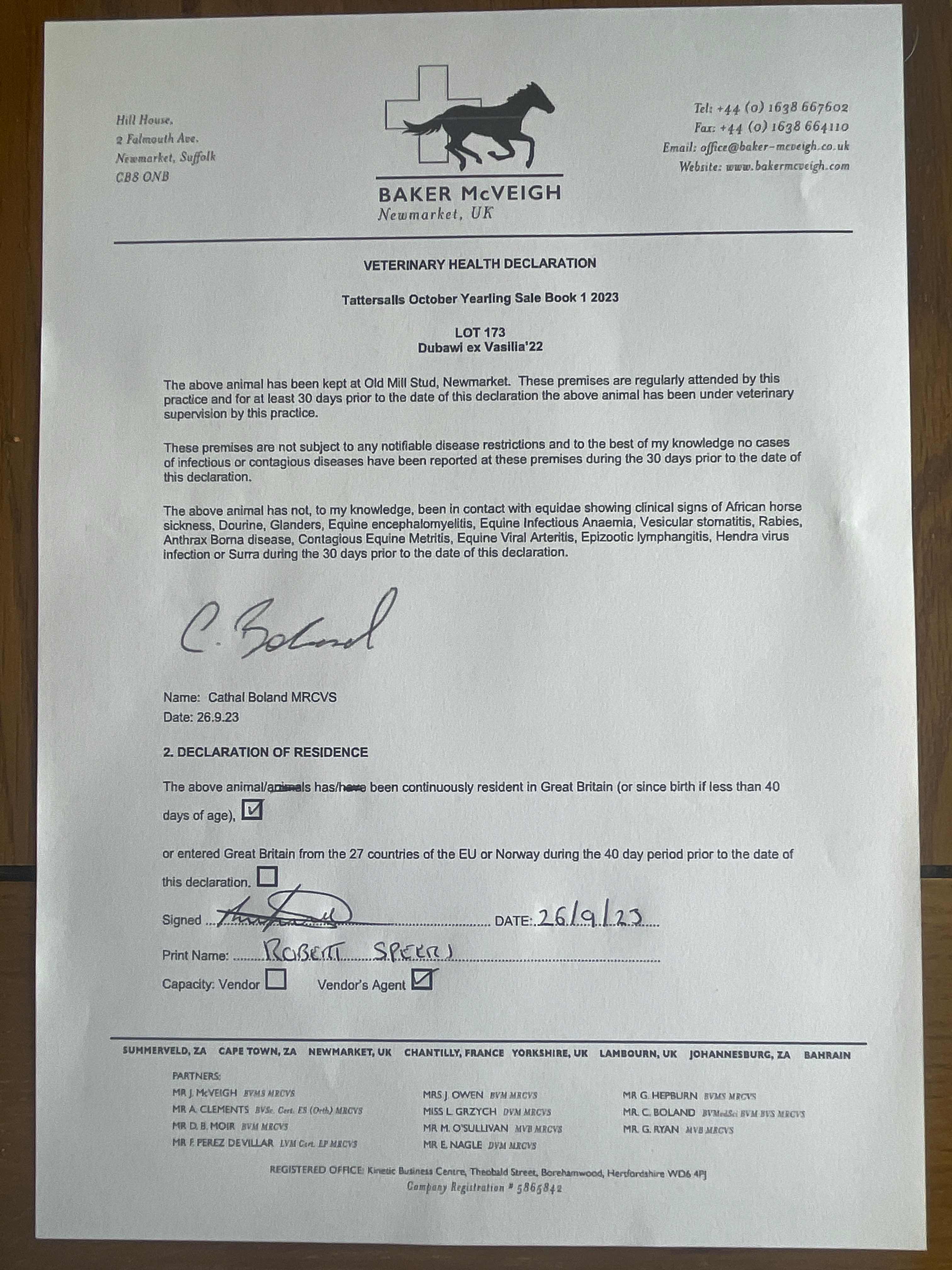 December Foal Sale 2010 lot 678 F. by Acclamation (GB) 2010, Castledillon Stud, Ireland (Agent)=>Vendor 16,000 gns