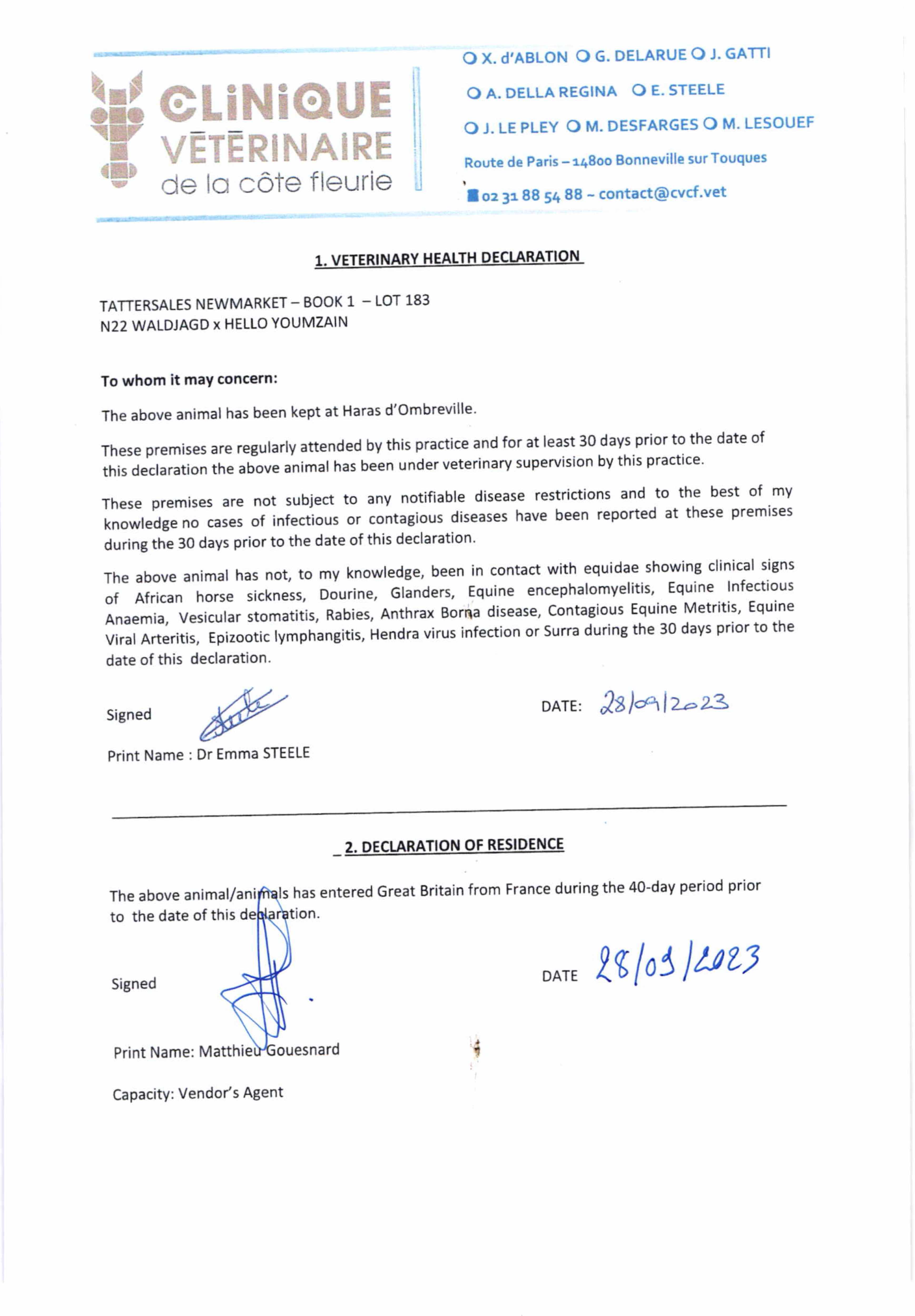 Lot 183 Hello Youmzain (FR) /Waldjagd (GB) B.C. (FR)