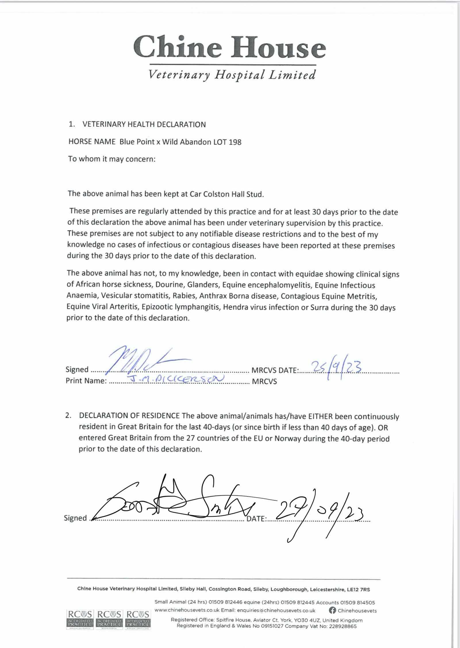 Consignor: Car Colston Hall Stud