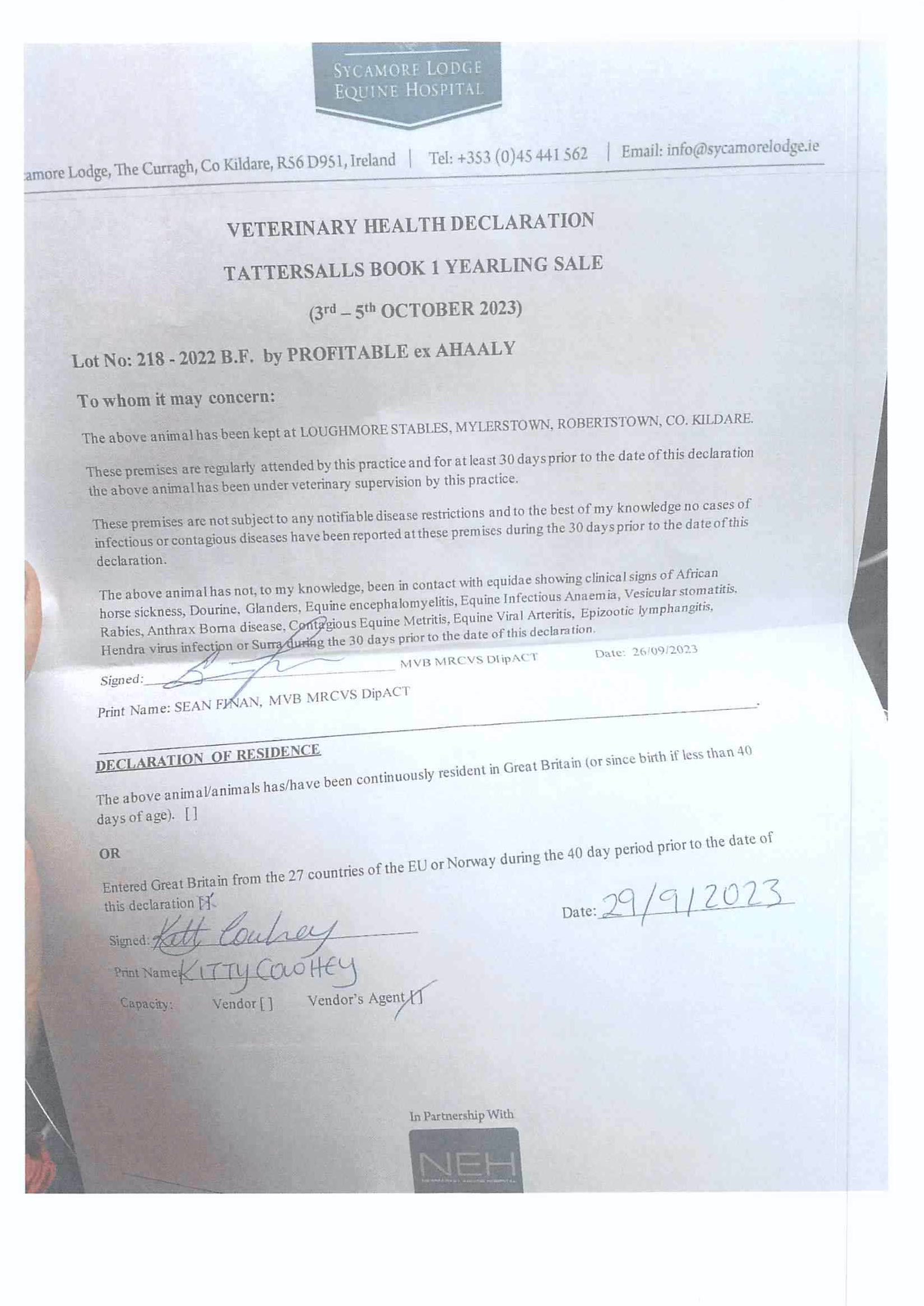 September Yearling Sale Part 1 2024 lot 421 F. by Supremacy (IRE) 2023, Loughmore Stables=>Ahmad Aldowaisan €5,000