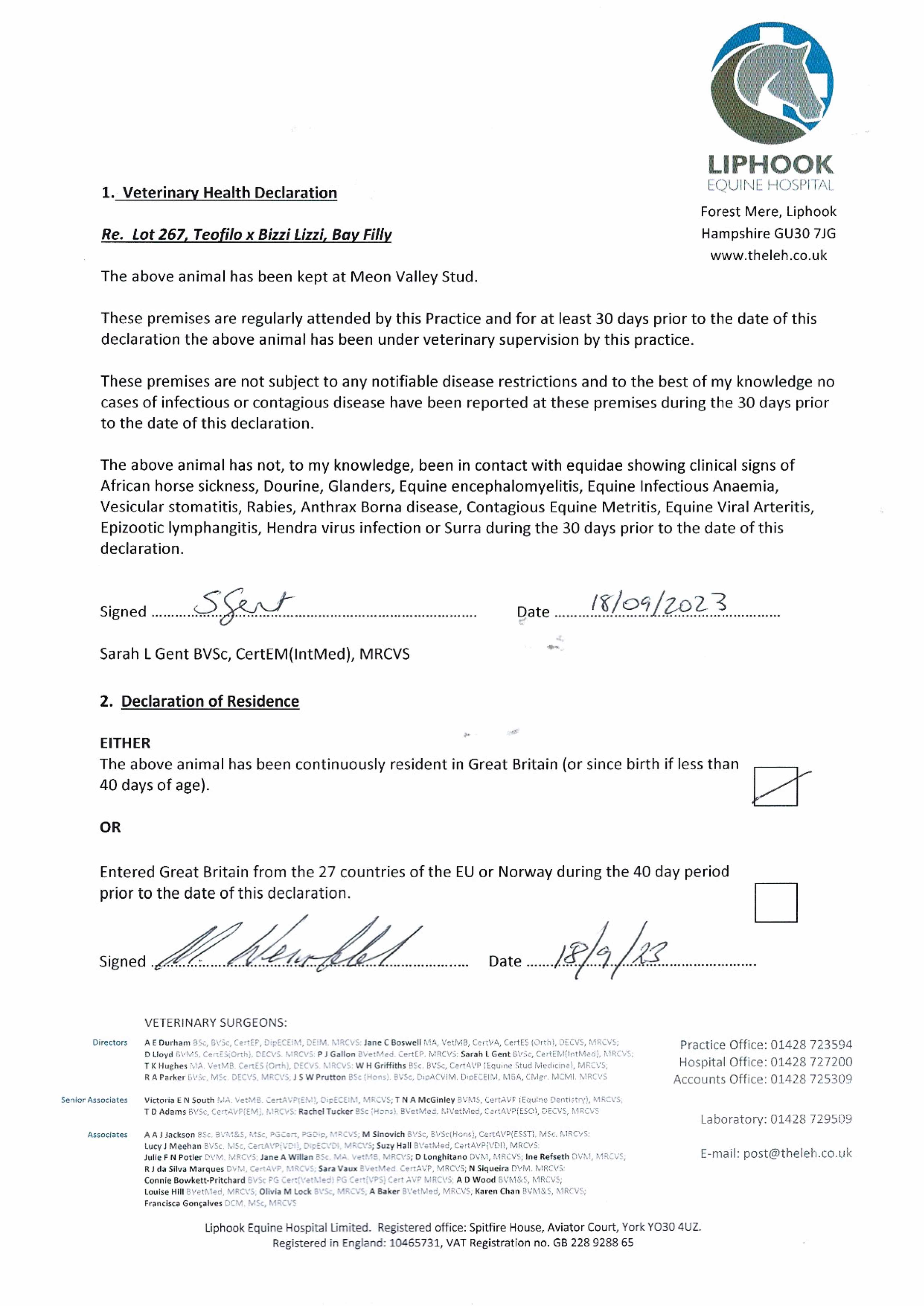 Consignor: Meon Valley Stud