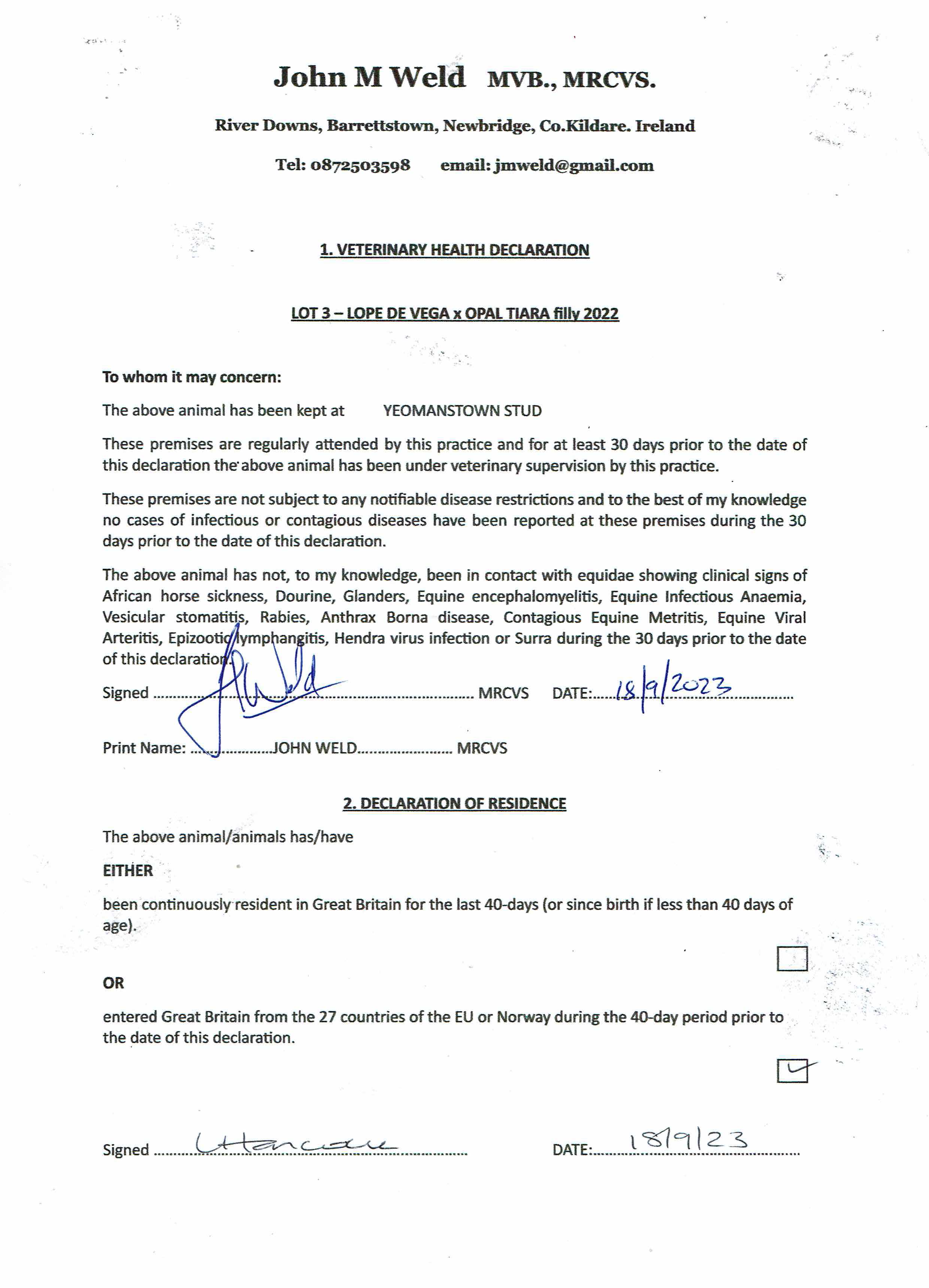 Consignor: Yeomanstown Stud, Ireland