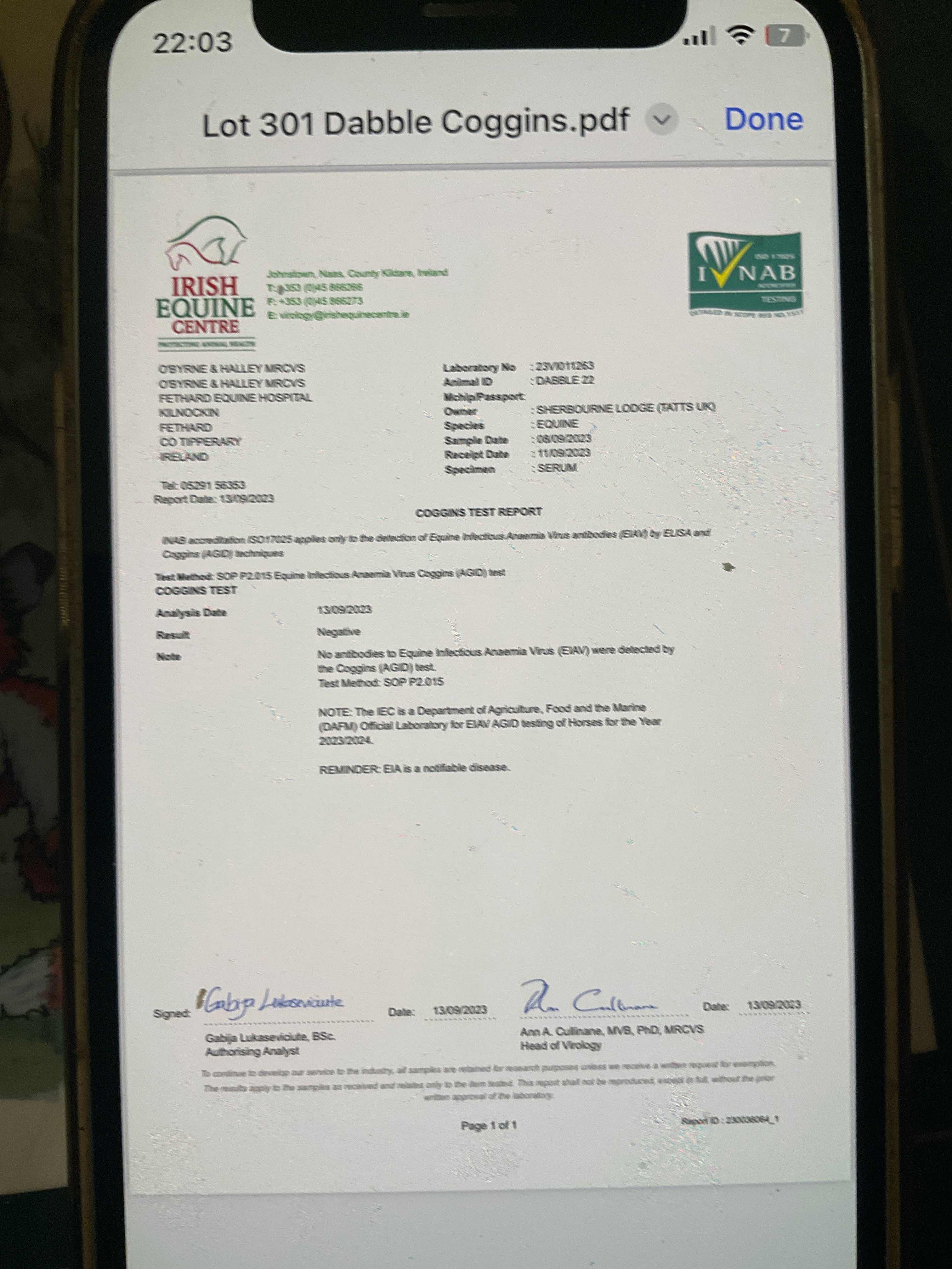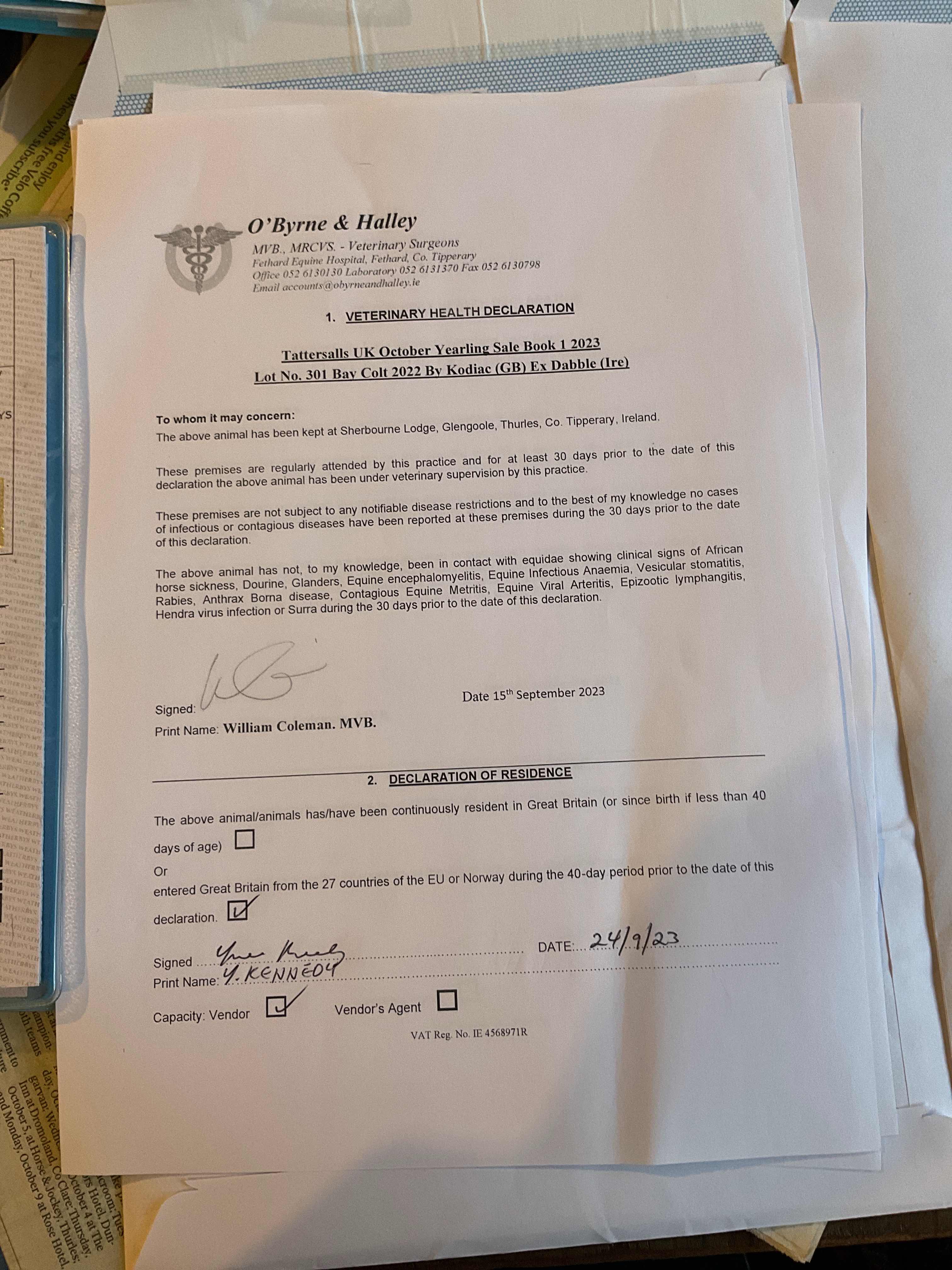 Consignor: Sherbourne Lodge, Ireland