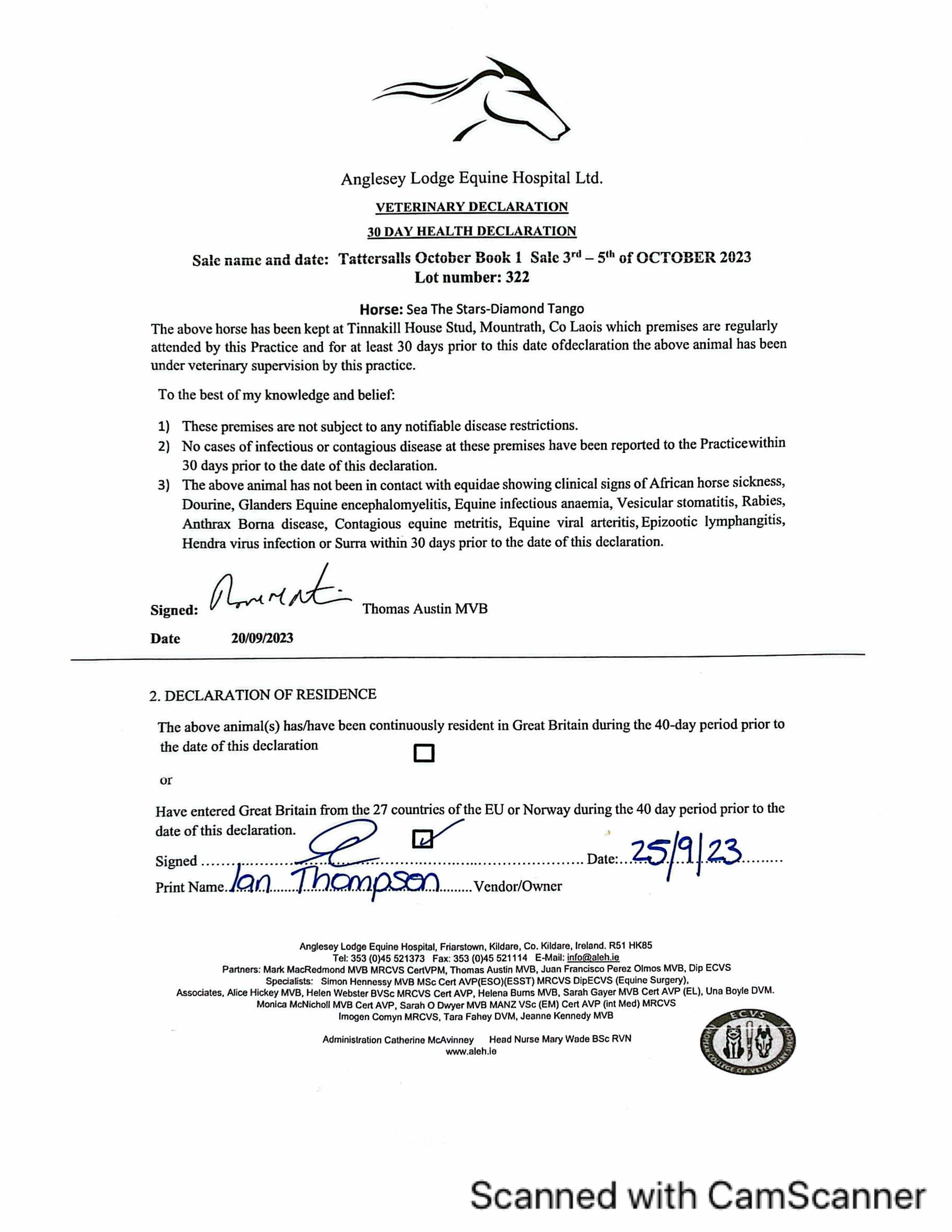 Consignor: Tinnakill House, Ireland